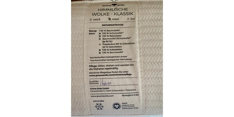Grund des Verkaufs: Wir haben uns doch für ein anderes Modell von Grüne Erde entschieden, ansonsten wirklich eine tolle Matratze