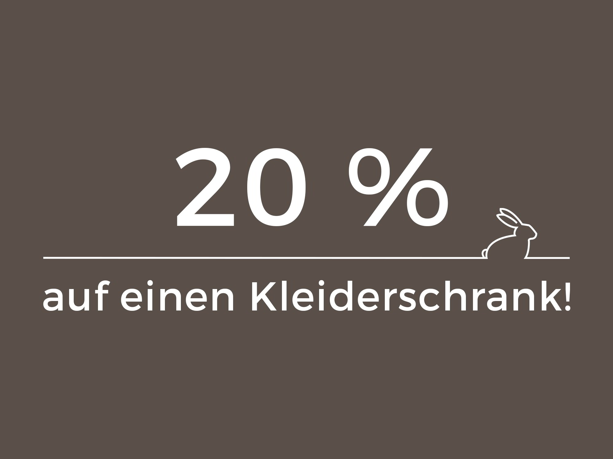 - 20% Rabatt auf Kleiderschrank und auf die Inneneinrichtung