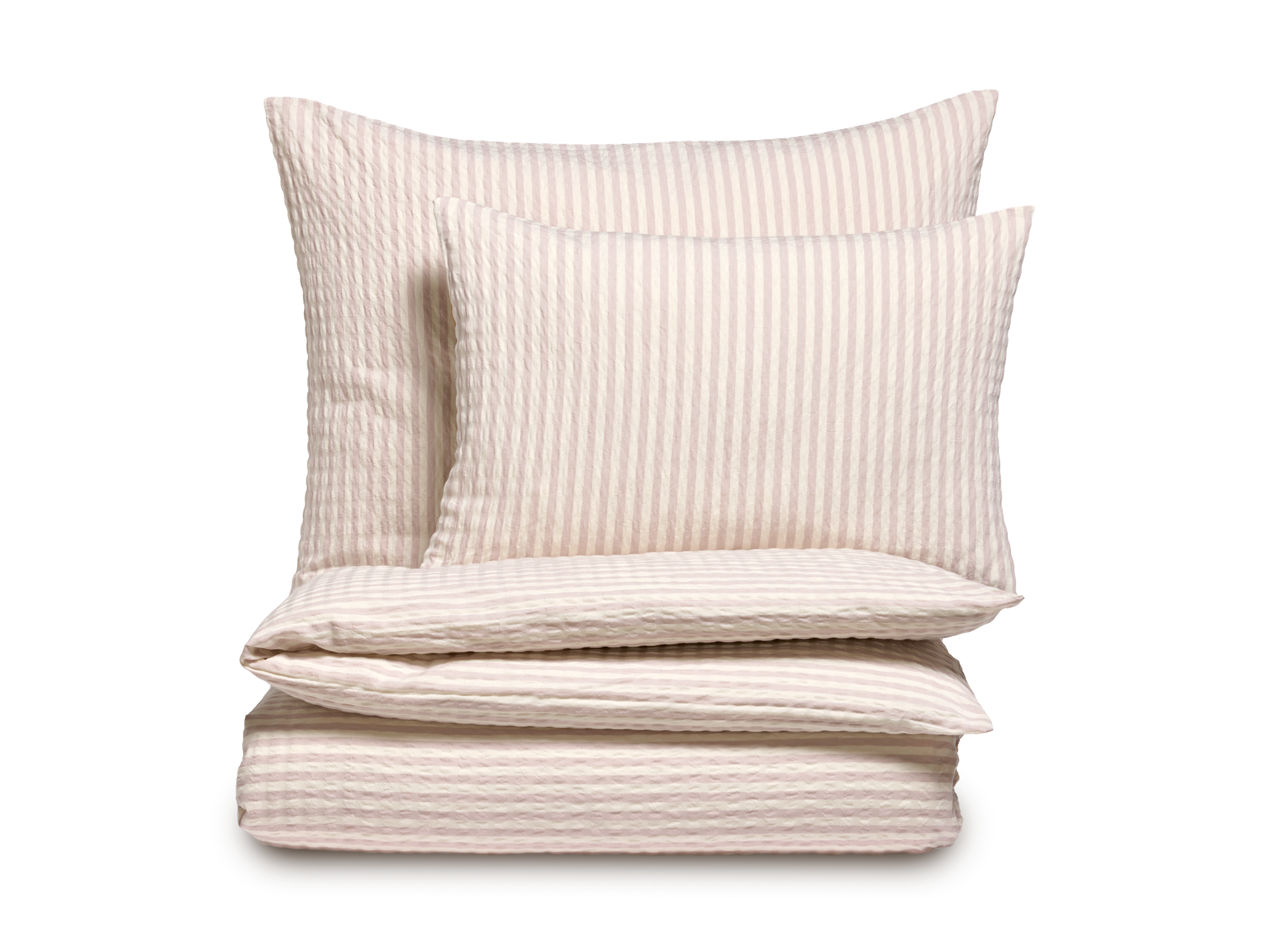 Die bügelfreie Bettwäsche Jakob überzeugt mit einer dezenten Streifen-Dessinierung und zeitloser Eleganz. Die charakteristische Seersucker-Struktur entsteht durch die unterschiedliche Spannung der Kettfäden beim Weben und sorgt in Verbindung mit der etwas höheren Grammatur für ein besonders stabiles, wertiges Schlafgefühl – zugleich luftig und atmungsaktiv.