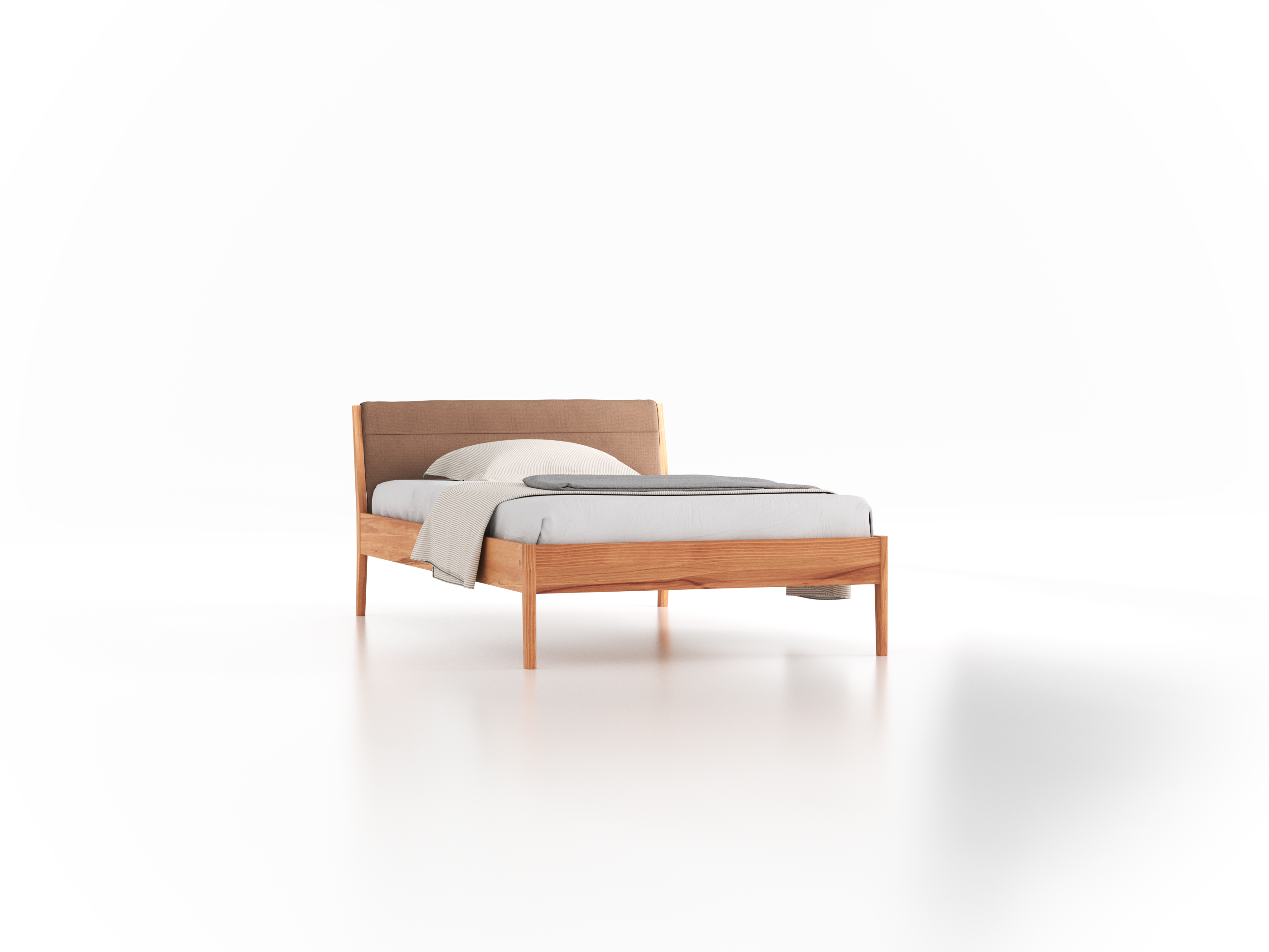 Dynamischer Schwung & hohe StabilitätDas stabile Betthaupt neigt sich sanft etwas nach hinten und bildet gemeinsam mit dem Bettfuß einen dynamischen Schwung. Es ist mit einer abnehmbaren, weich gepolsterten Housse ausgestattet. Diese fügt dem festen Material Holz eine weiche Komponente hinzu und lädt zum bequemen, knarzfreien Anlehnen ein, etwa beim Lesen oder beim abendlichen Gedankenaustausch mit dem Partner bzw. der Partnerin.Material & FertigungDas hochwertige, dauerhafte Massivholz für Almeno stammt aus mitteleuropäischen, nachhaltig bewirtschafteten Wäldern. Die Teile des Bettes werden von passgenauen, bei Bedarf wieder lösbaren Holzsteckverbindungen fest zusammengehalten. Dank dieser metallfreien Lasche-und-Dübel-Verbindungen lässt sich Almeno ohne Qualitäts- und Funktionsverlust wiederholt zerlegen und wieder zusammenbauen – ganz im Sinne der langen Nutzungsdauer des Bettes.Die Holzoberfläche ist von Hand mit duftendem, natürlichem Pflegeöl (lösemittelfrei) eingelassen. Zirbe bleibt vollständig unbehandelt, damit der charakteristische Duft dieser Holzart gut zur Geltung kommt.Die abnehmbare Betthaupt-Housse ist mit weichem Kokoslatex und Schurwollfilz gepolstert, mit dem NATURTEXTIL BEST-zertifizierten Schurwollstoff Ihrer Wahl bezogen und mit handwerklich sorgfältigen Nähten verarbeitet.Die Housse wird an Holzdübeln an der Innenseite des Bettrahmens befestigt, über das Betthaupt geschlagen und mit dekorativen Knöpfen aus Olivenholz verschlossen.Hinweis: Preis inklusive Aufstellservice, ohne Lattenrost, Matratze und Zubehör. -