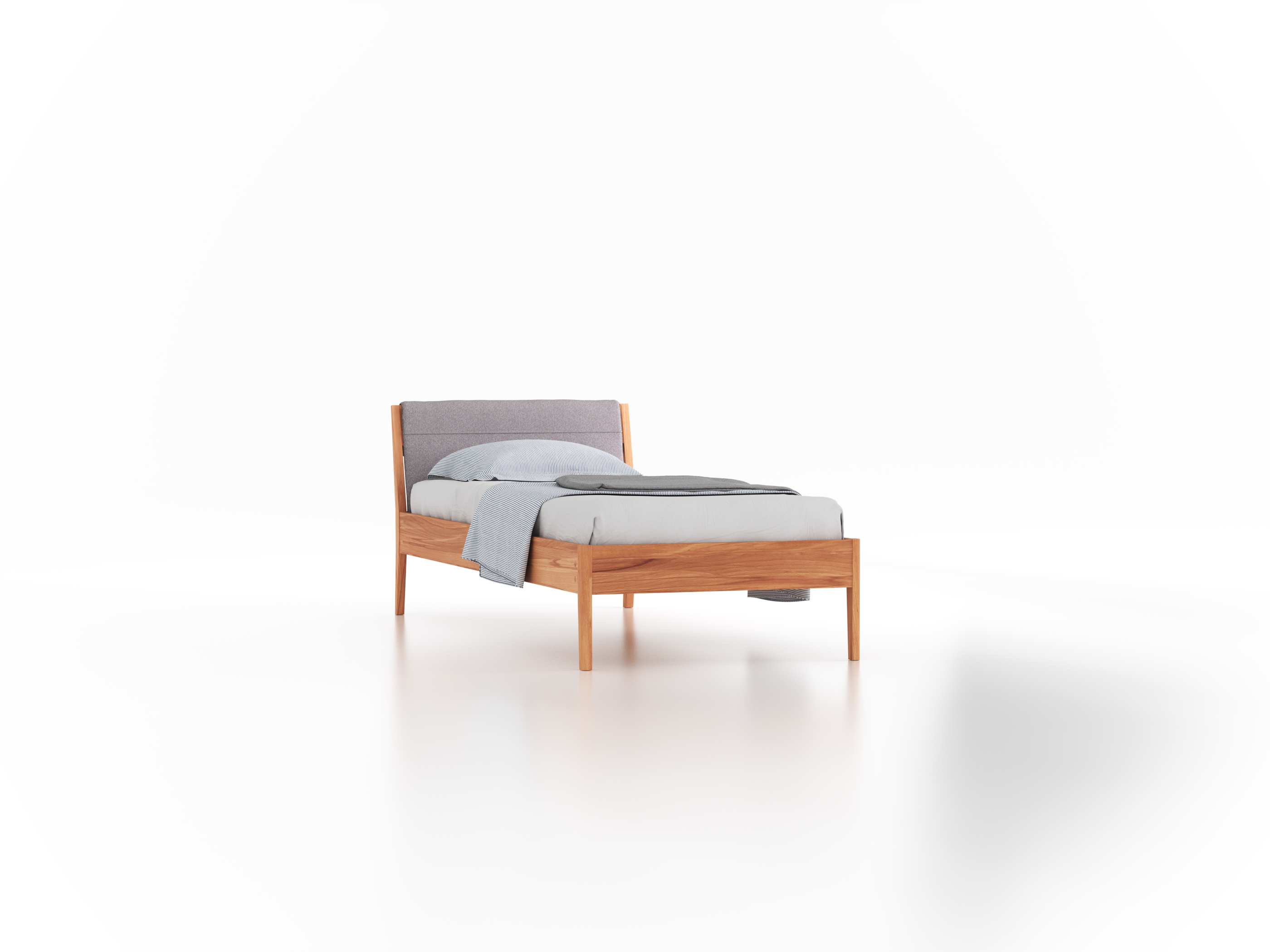Bett Almeno mit Polsterbetthaupt, 90 x 210 cm, Wollstoff Stavang Stein (61), Kernbuche