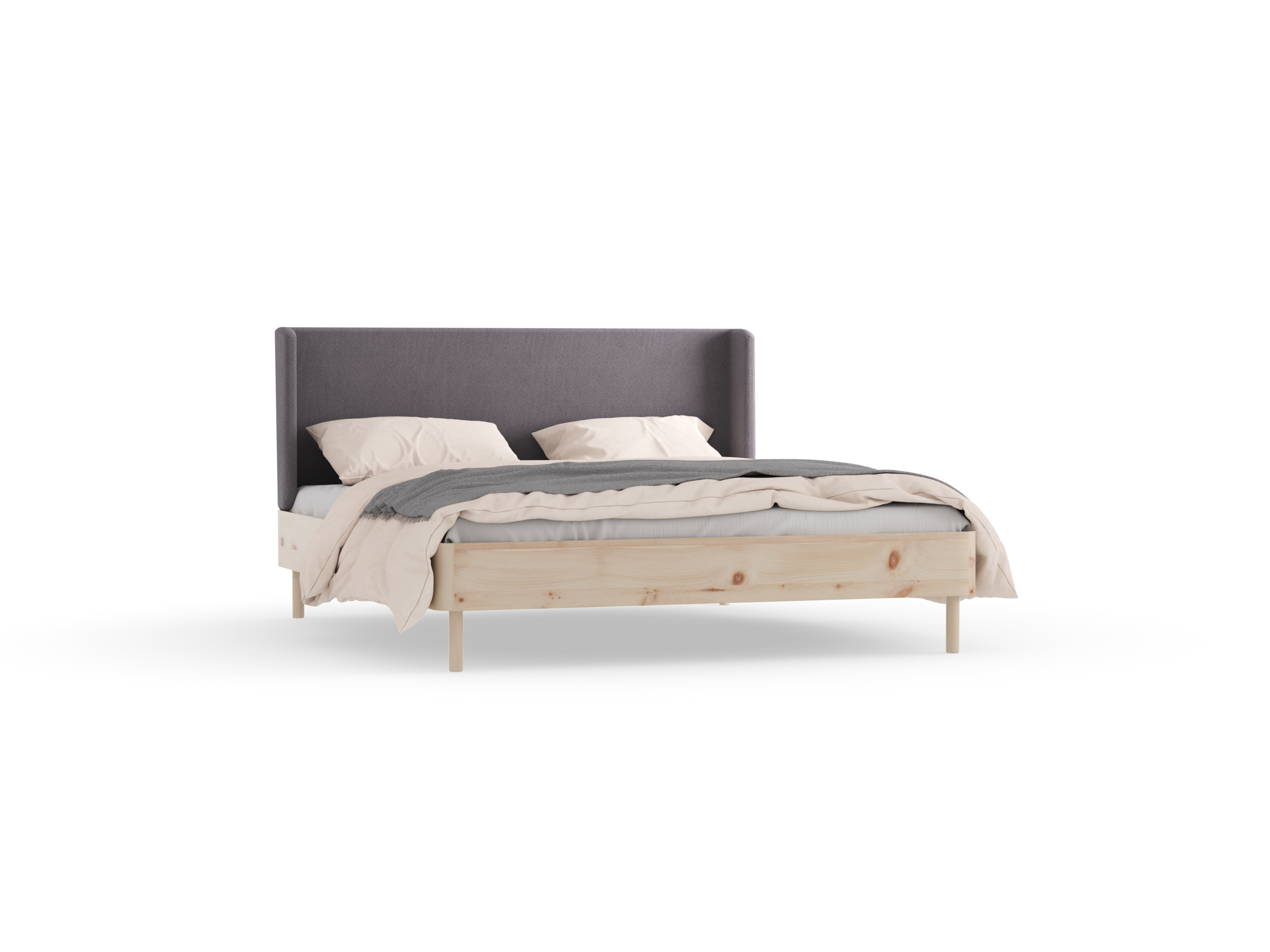 Bett Tonda, mit niedrigem Polsterbetthaupt , 180 x 210, Wollstoff Kaland Schiefer (67), Zirbe