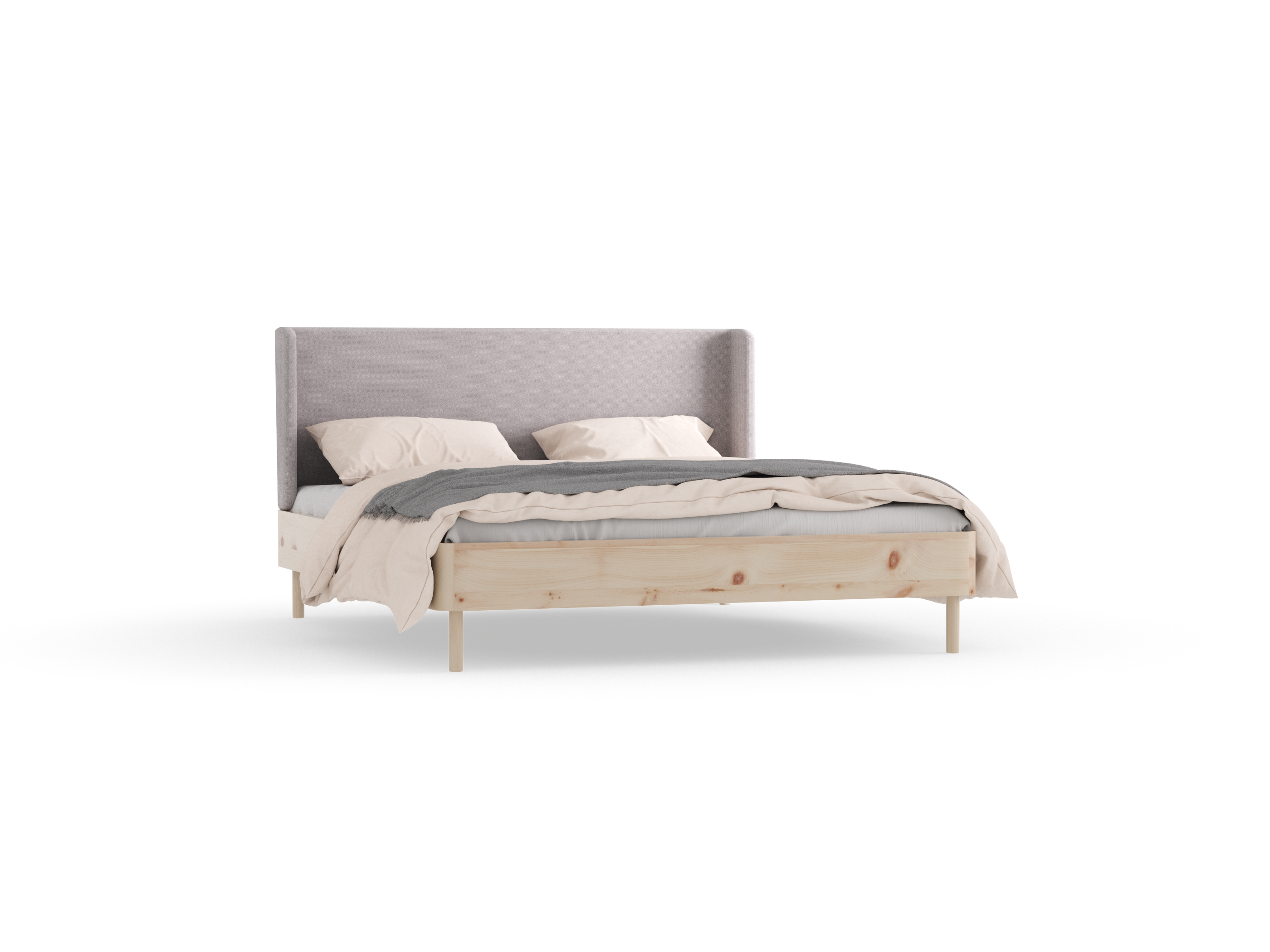 Bett Tonda, mit niedrigem Polsterbetthaupt , 180 x 210, Wollstoff Elverum Mocca (73), Zirbe