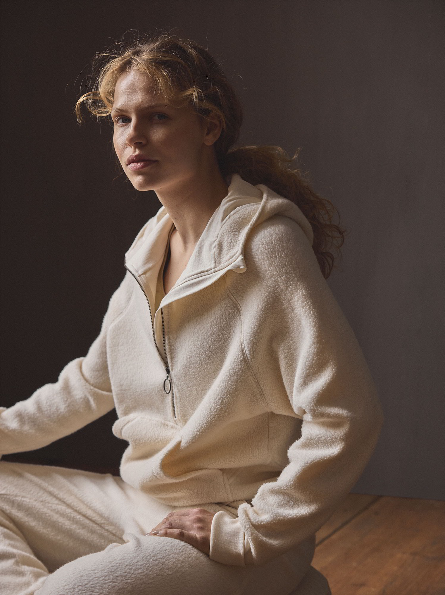 Hautschmeichelnd, pur und wunderbar wärmendAls besonderes Lieblingsstück gilt unser zeitloser Hoodie in flauschiger, softer Teddy-Plüsch-Qualität. Das kuschelige Material aus wertvoller Baumwolle kbA spendet ein wohliges Gefühl – über Saisonen hinweg! Abgerundet wird das puristische Modell mit der lockeren Passform mit einer gefütterten Kapuze mit angeschnittener Kragenpartie und Reißverschluss mit Ring-Puller und Untertrittsleiste. Weitere Details: aufgesetzte Känguruhtasche, Flatlock-Details entlang der Raglannähte und Rippbündchen an den Abschlüssen.Schnitt: leger. In Größe S (36/38) ca. 62 cm lang. Unsere Models sind zwischen 175 cm und 177 cm groß und tragen Kleidergröße S.Ökologisch & fair produziertEin schönes Stück Natur, welches wir nur zu gern tragen. Dieses Kleidungsstück entsteht aus Baumwolle kbA und wird nach strengen Richtlinien – wie dem Global Organic Textile Standard – bei unserem Partnerbetrieb gefertigt.Material: 100 % Baumwolle.Materialherkunft: Baumwolle kbA aus Griechenland. Gewirkt in Griechenland. Gefertigt in Bulgarien. -