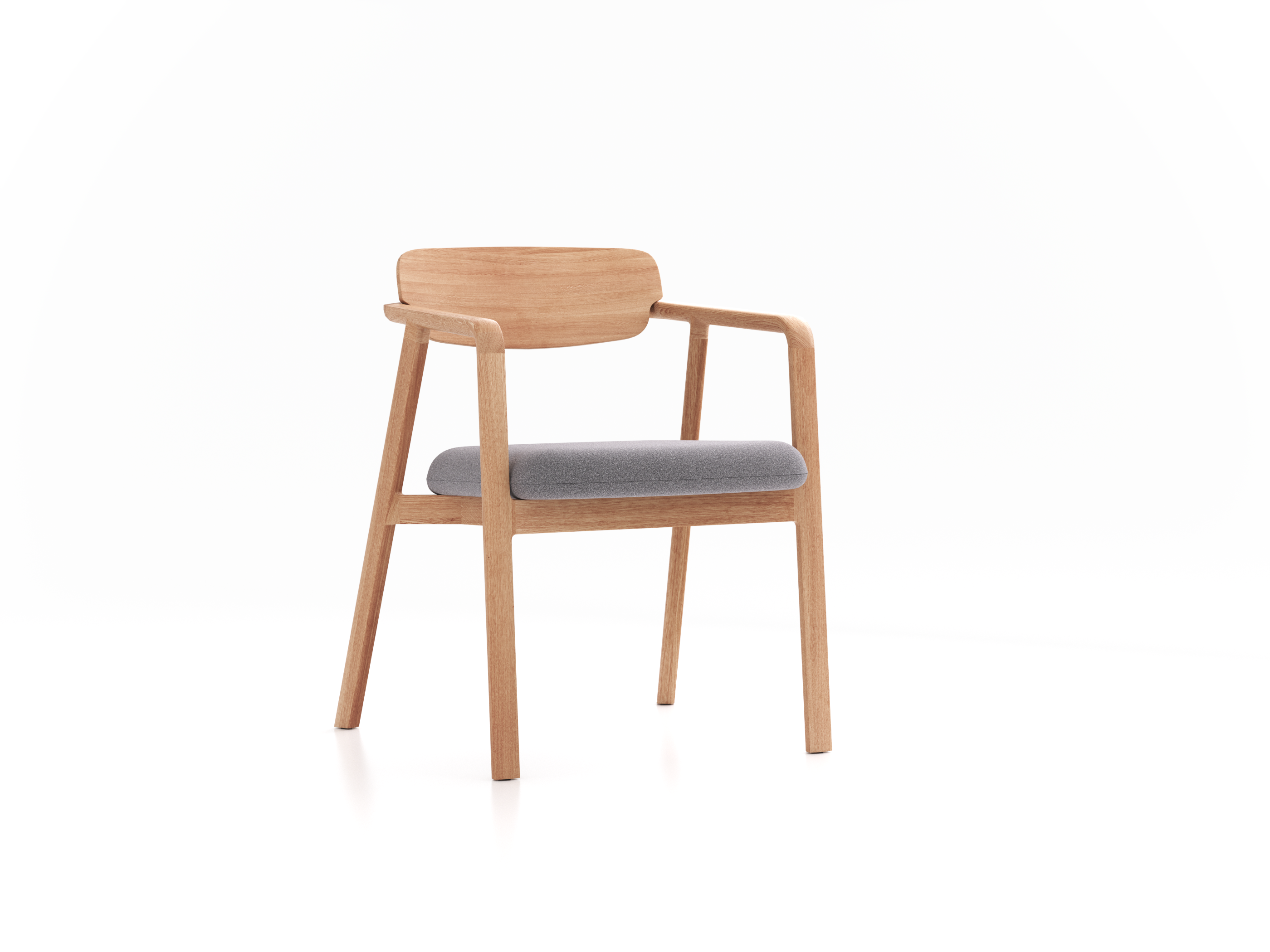 Die fest-elastische Sitzpolsterung aus Naturfasern sowie die körpergerecht geformte, gebogene Rückenlehne aus Massivholz gewähren aufrechtes, gleichzeitig bequemes Sitzen – auch über längere Zeit hinweg. Dabei erweisen sich die sanft gerundeten Armlehnen als wahre "Handschmeichler": ein Grund mehr, ein bisschen länger am Tisch sitzen zu bleiben.
