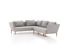Lorea-Ecksofas wahren trotz ihrer Maße aufgrund der optisch zurückhaltenden, schlanken Lehnen und des zarten Holzkorpus stets Eleganz. Die bequeme Naturpolsterung und große Kissen sorgen für ebenso hohen wie ungezwungenen Sitz- und Liegekomfort.