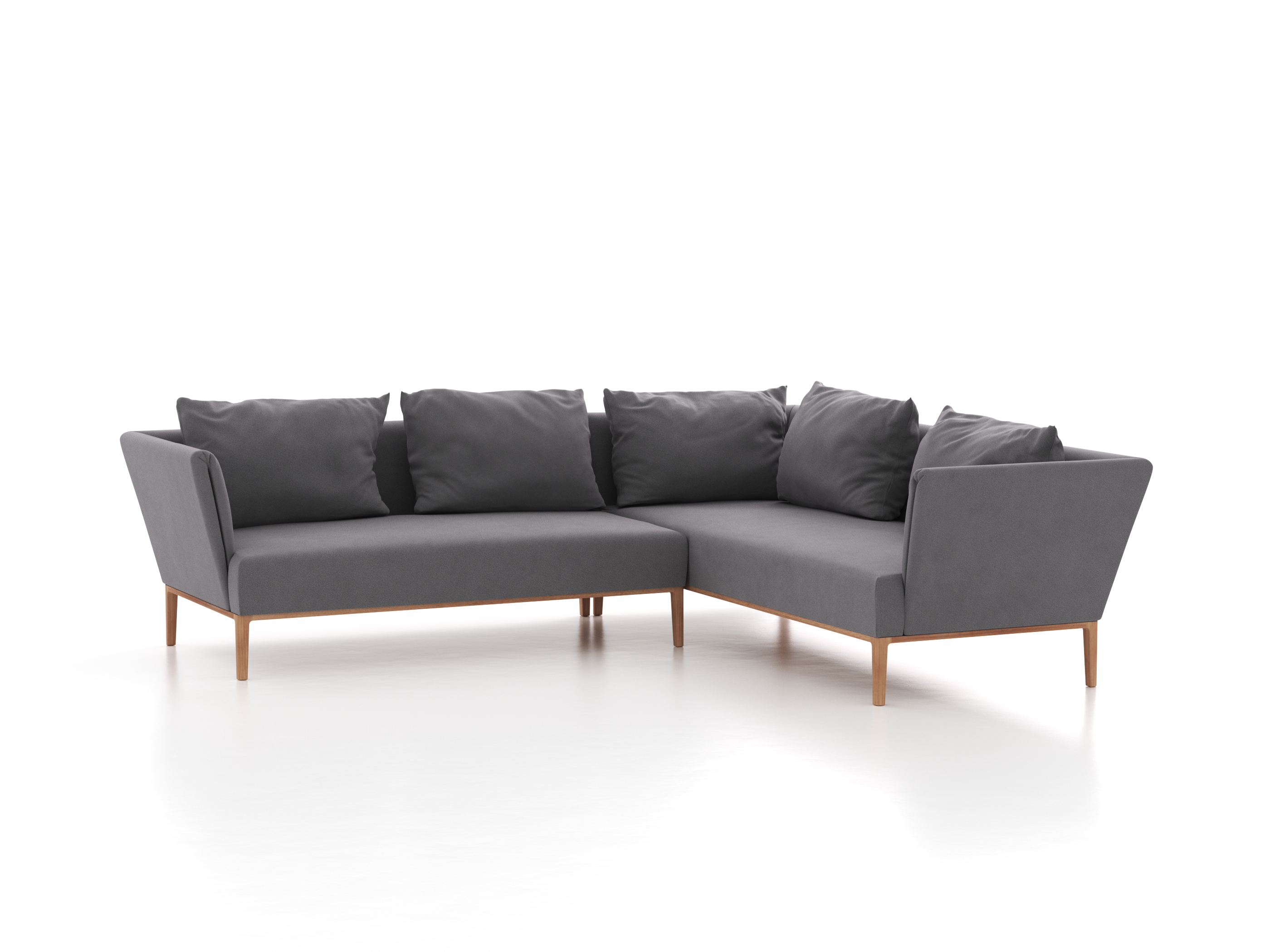 Lorea-Ecksofas wahren trotz ihrer Maße aufgrund der optisch zurückhaltenden, schlanken Lehnen und des zarten Holzkorpus stets Eleganz. Die bequeme Naturpolsterung und große Kissen sorgen für ebenso hohen wie ungezwungenen Sitz- und Liegekomfort.