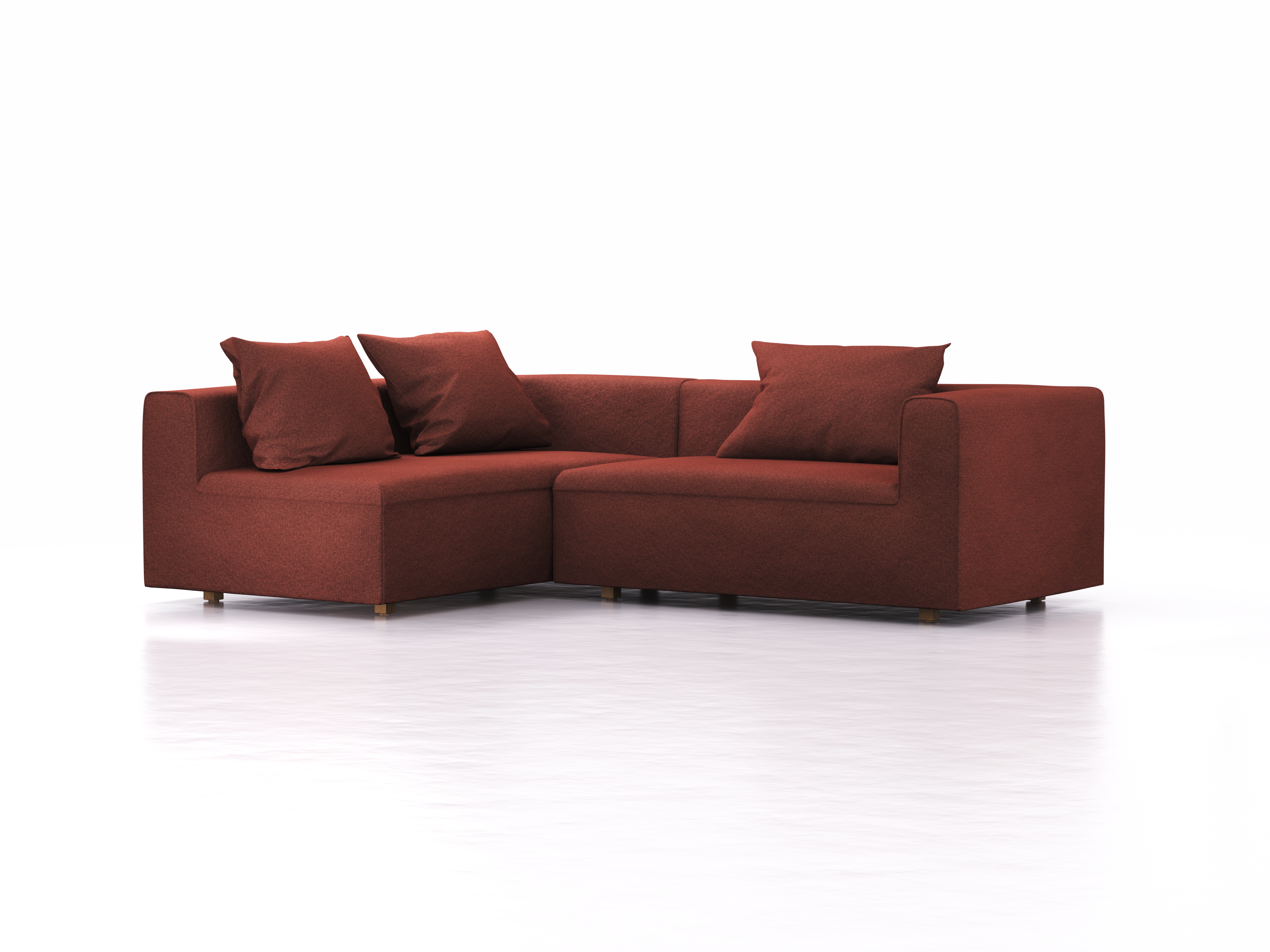 • Ecksofa Sereno mit Liegeteil, inkl. 3 Kissen (70 x 55 cm), Liegeteil links, B 246 x T 180 cm, Bodennah, mit Bezug Wollstoff Kaland Ziegel (72), Eiche