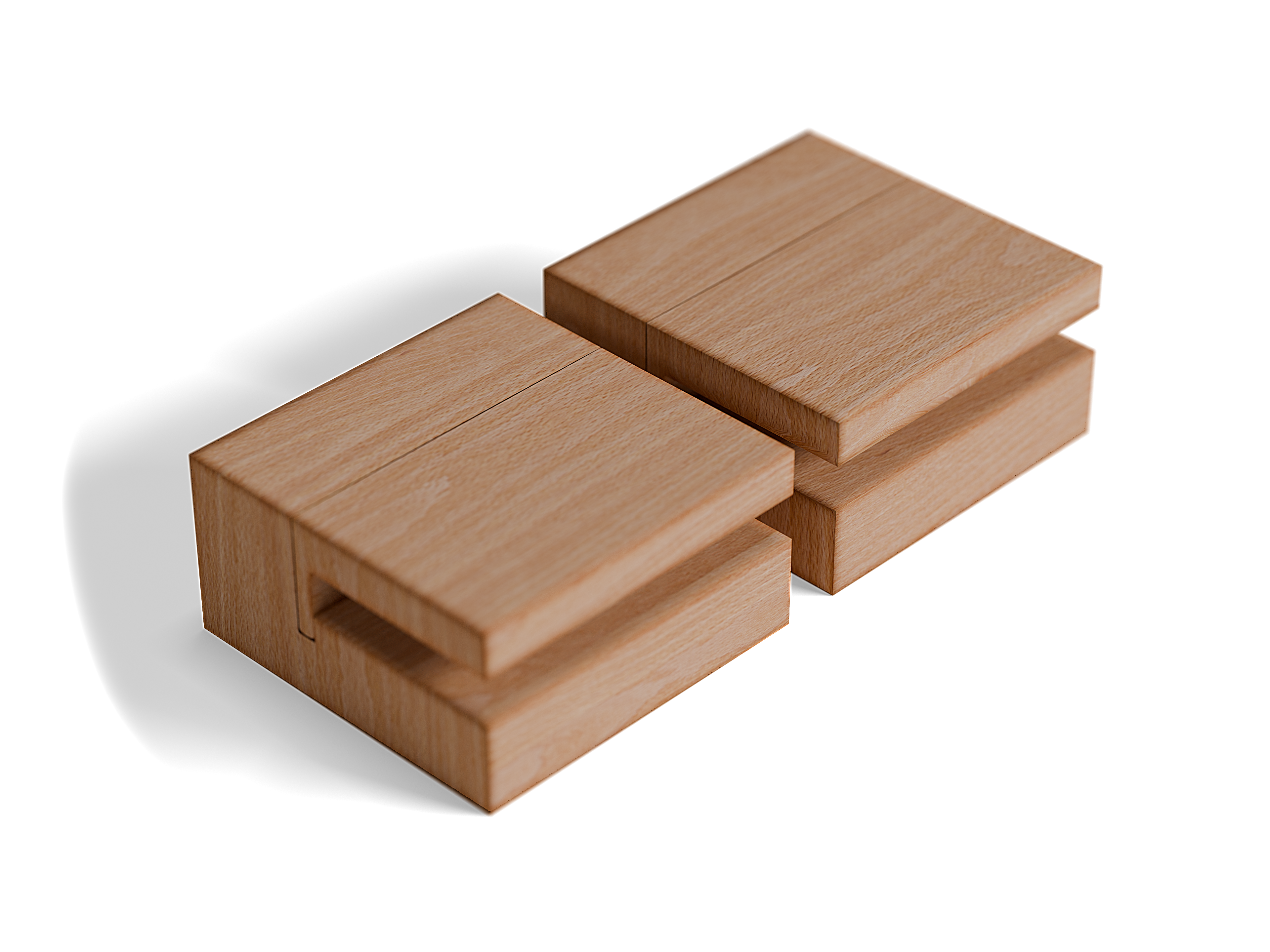Für das Regal mit 2 Fächern ist 1 Aufhänge-Set, für alle anderen Regale sind 2 Aufhänge-Sets erforderlich. Deren Holzart kann – abgestimmt auf das Regal – in Buche oder Eiche gewählt werden.