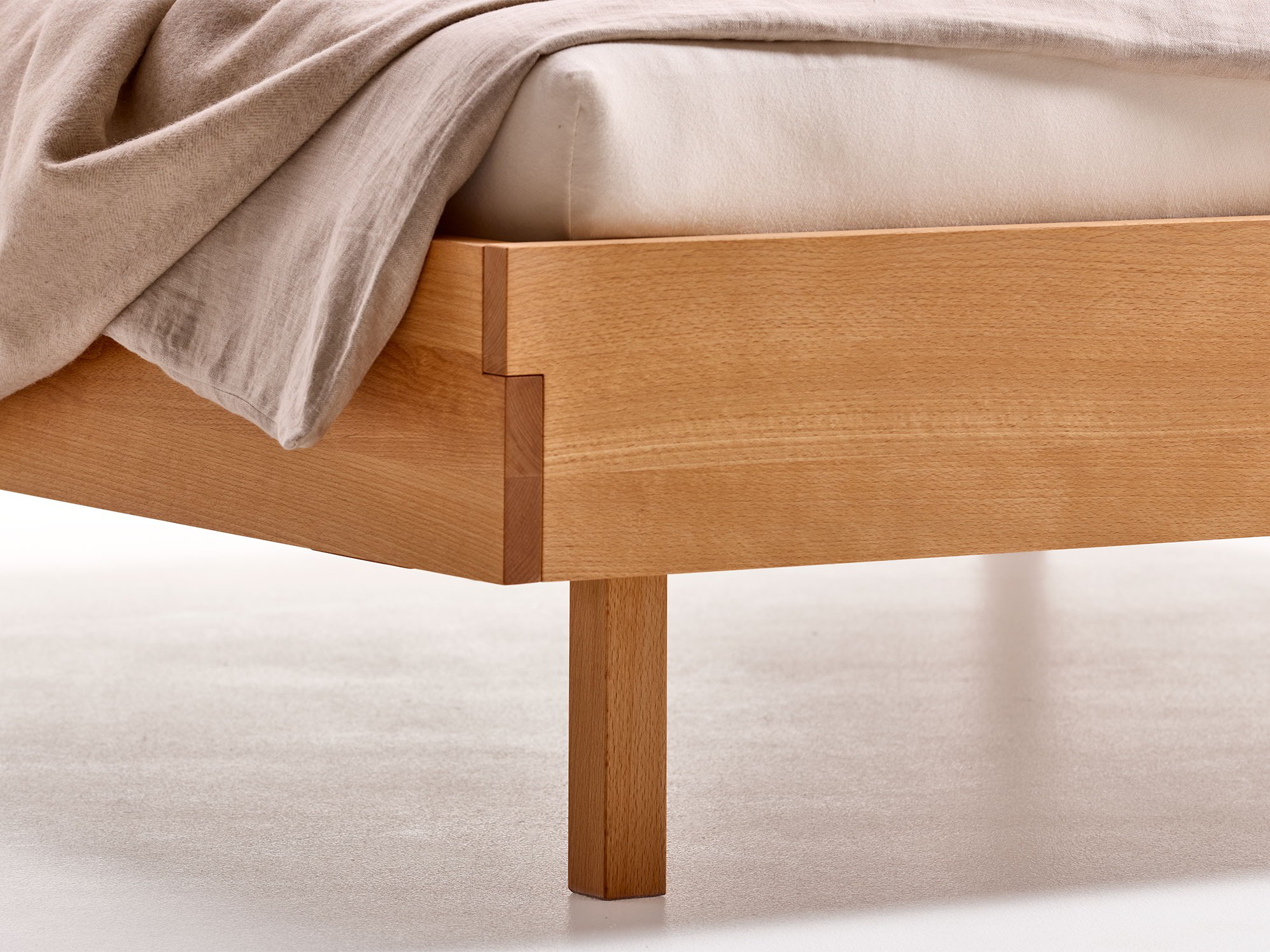 Massivholz aus nachhaltig bewirtschafteten Wäldern, handwerklich erstklassig verarbeitet, wieder lösbare, metallfreie Dübel-Steck-Verbindungen beim Bettrahmen; von Hand mit natürlichem Öl eingelassene Holzoberfläche.-