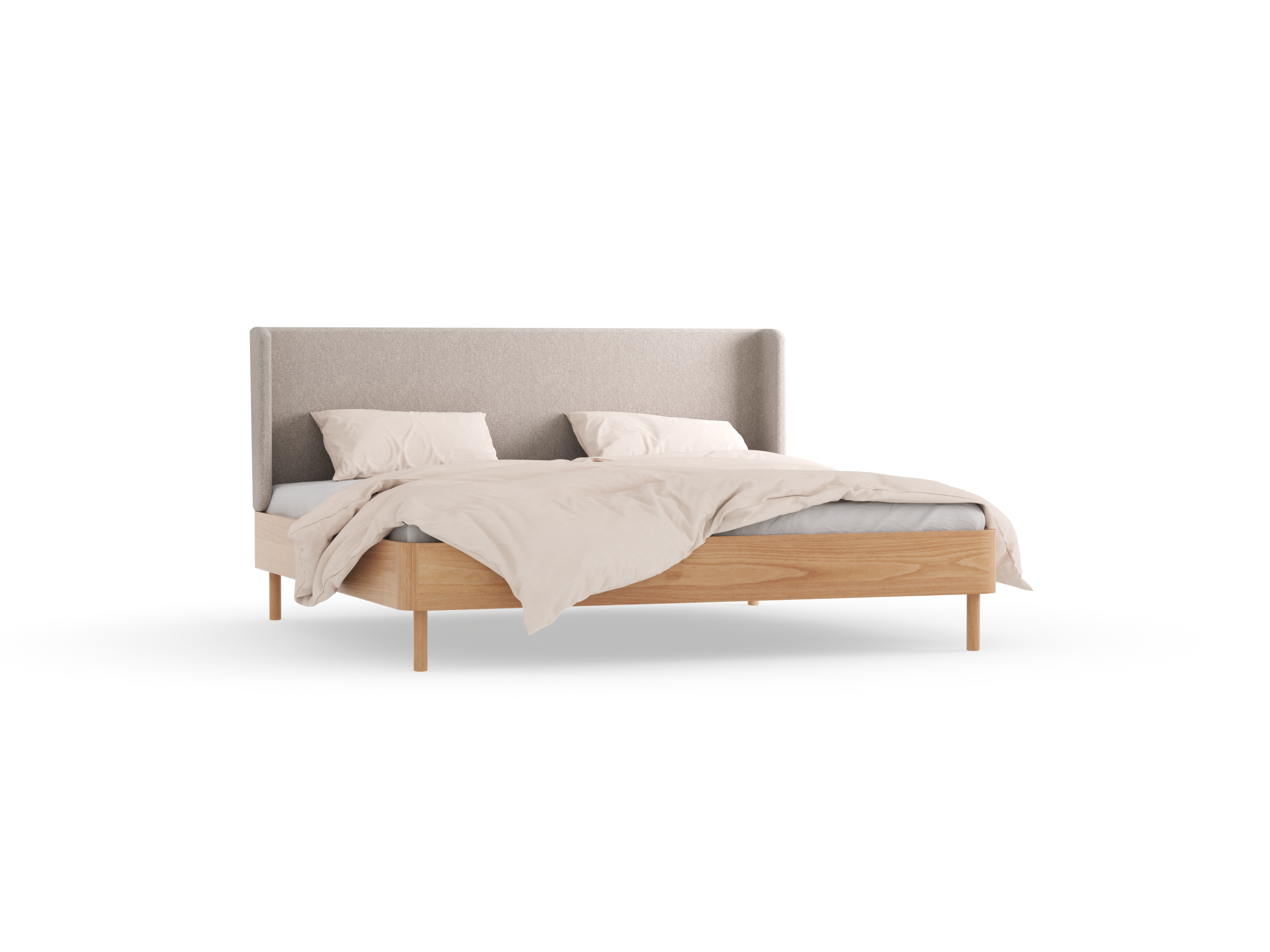 Bett Tonda, mit niedrigem Polsterbetthaupt , 200 x 200, Wollstoff Tano Natur (79), Buche