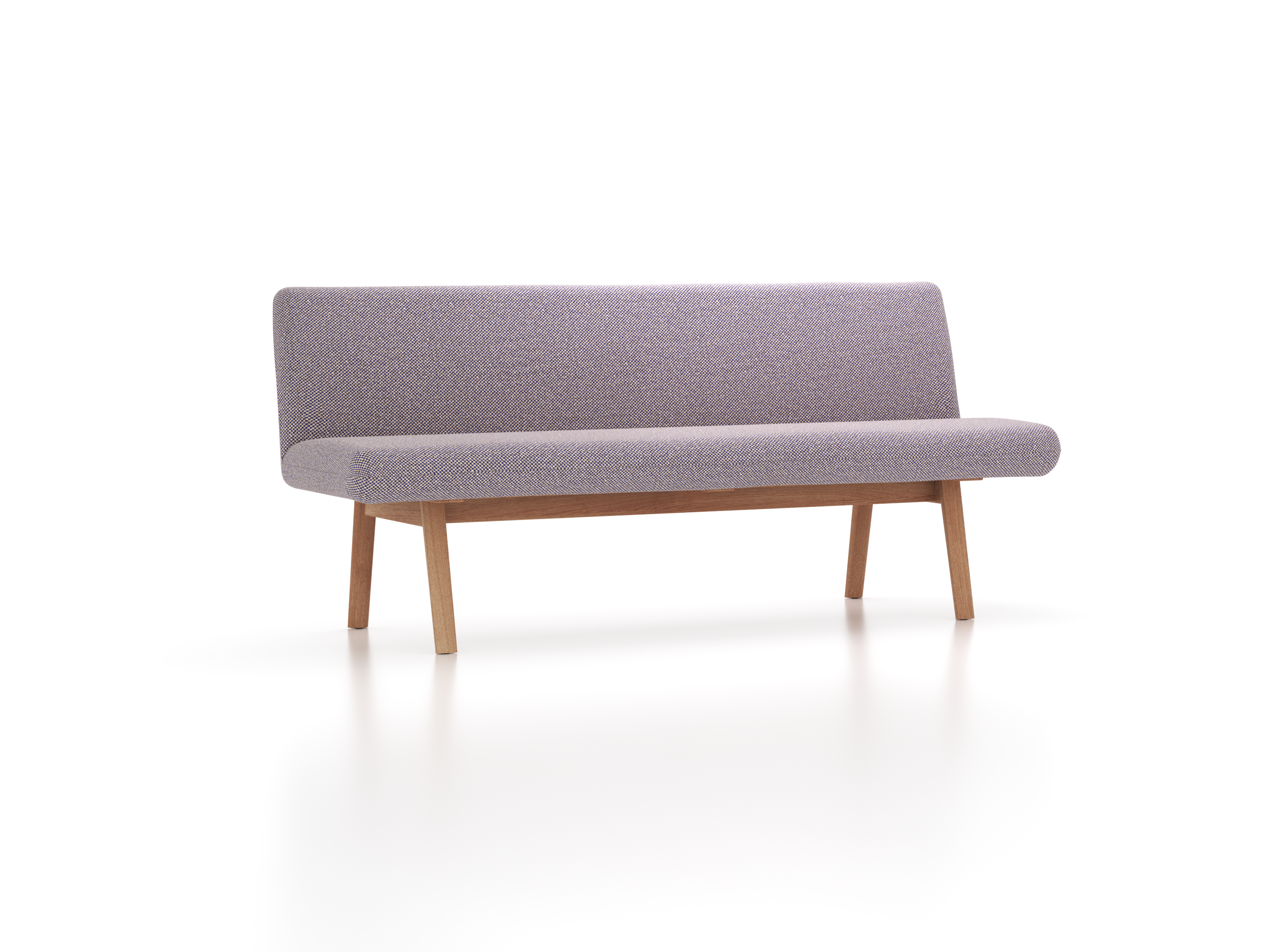Getragen wird der Polsterteil von einem Fußgestell mit gerundeten Ecken und Kanten. Beide Teile sind von wieder lösbaren Holzsteckverbindungen fest zusammengehalten. Die nach innen versetzte Position der Bankbeine erleichtern die Bewegungsfreiheit der am Tisch Sitzenden. Schönes Designdetail: Die nach oben verlängerten Hinterbeine der Bank überlappen die Rückenlehne und stützen diese gleichsam. So macht Ketil auch freistehend gute Figur.