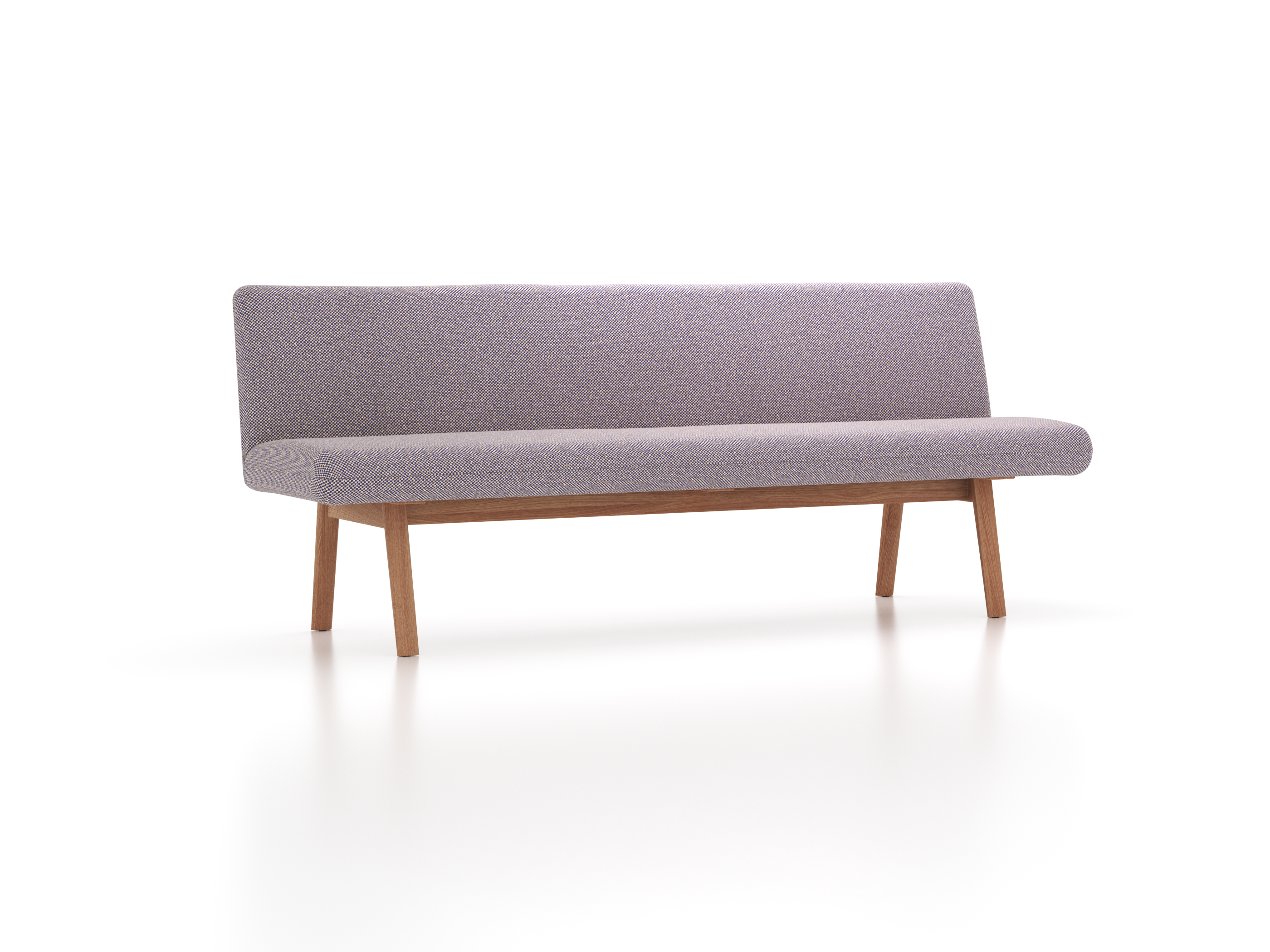 Getragen wird der Polsterteil von einem Fußgestell mit gerundeten Ecken und Kanten. Beide Teile sind von wieder lösbaren Holzsteckverbindungen fest zusammengehalten. Die nach innen versetzte Position der Bankbeine erleichtern die Bewegungsfreiheit der am Tisch Sitzenden. Schönes Designdetail: Die nach oben verlängerten Hinterbeine der Bank überlappen die Rückenlehne und stützen diese gleichsam. So macht Ketil auch freistehend gute Figur.