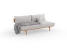 Legeres Sitzen, Liegen, LoungenDas Leitmotiv für Lana war "Reduktion auf das Wesentliche": puristische Formgebung, einfache Konstruktion und optimierter Materialeinsatz, um kostengünstiger fertigen und Ihnen einen attraktiven Preis im Einstiegsbereich bieten zu können.Gleichzeitig erfüllt das Sofa höchste Ansprüche an Qualität und ökologische Nachhaltigkeit: metallfreier Unterbau aus Massivholz, handgefertigte Polsterung, NATURTEXTIL BEST-zertifizierte, abnehmbare Bezüge aus 100 % Naturfasern.Die kleineren Lana-Modelle finden auch auf beschränktem Wohnraum, im urbanen Bereich und in Single- oder Zwei-Personen-Haushalten Platz.In der Variante "Loungesofa" erweist sich Lana als sehr flexibel: Dessen Liegeteil kann nach Belieben rechts oder links an das Sofa angedockt werden, binnen Minuten "die Seite wechseln", und auch solitär eingesetzt werden - als Tagesliege.Bereits der Anblick des von der Polsterung dominierten Sofas suggeriert informelle Bequemlichkeit. Die Grundidee – ungezwungenes Sitzen, Liegen, Loungen – kommt auch in der großzügigen Sitztiefe von 65 cm und in der Polsterstärke von 14 cm zum Ausdruck. Die schlanken Füße und die Schattenfuge zwischen dem abgestuften Unterbau und der Sitzpolsterung lassen die Polsterung etwas abgehoben erscheinen und betonen die legere Anmutung von Lana.Der formal schlichte, stabile Unterbau aus fix verleimtem Massivholz trägt einen Lattenrost mit elastischen Federleisten. Auf diesem ruht lose die Sitzpolsterung. Die Rückenpolster lehnen an einem breiten Massivholzsteg, der dem Sofa eine schöne Rückenansicht verleiht.Polsterung und abnehmbare BezügeDie in unserer Textilwerkstätte gefertigte, sandwichartig aufgebaute Polsterung besteht aus fest-elastischem Kokoslatex, weichem Naturlatex und Schafschurwollvlies. Sie ist mit einer "Weißpolsterung" aus Baumwollstoff fix bezogen. Darüber kommt der abnehmbare Sofabezug. Für diesen können Sie aus einer Vielzahl von NATURTEXTIL BEST-zertifizierten Naturgeweben auswählen.Separat bestellbar: lose Armlehne, B 26 x T 51 x H 16 cm, auch als Kopfkissen verwendbar. -