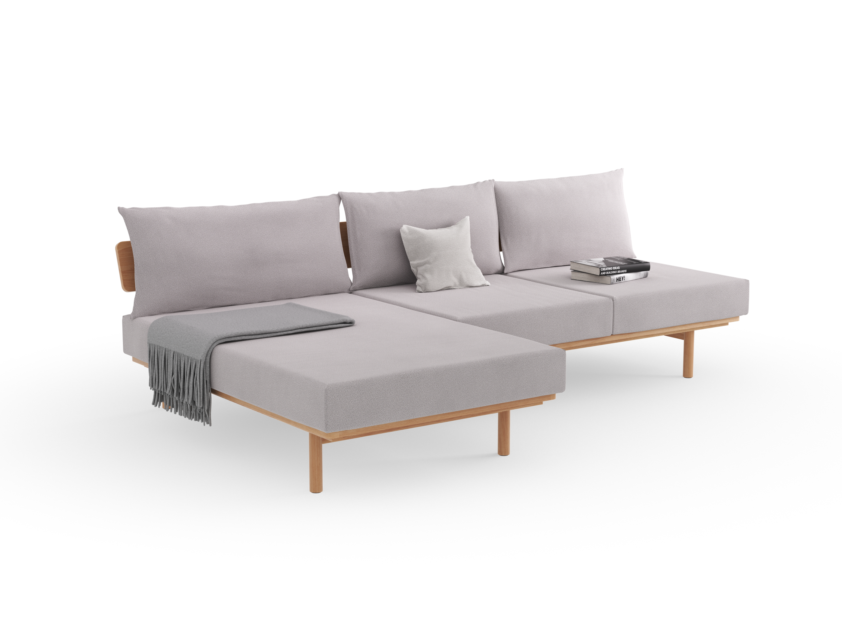 Legeres Sitzen, Liegen, LoungenDas Leitmotiv für Lana war "Reduktion auf das Wesentliche": puristische Formgebung, einfache Konstruktion und optimierter Materialeinsatz, um kostengünstiger fertigen und Ihnen einen attraktiven Preis im Einstiegsbereich bieten zu können.Gleichzeitig erfüllt das Sofa höchste Ansprüche an Qualität und ökologische Nachhaltigkeit: metallfreier Unterbau aus Massivholz, handgefertigte Polsterung, NATURTEXTIL BEST-zertifizierte, abnehmbare Bezüge aus 100 % Naturfasern.Die kleineren Lana-Modelle finden auch auf beschränktem Wohnraum, im urbanen Bereich und in Single- oder Zwei-Personen-Haushalten Platz.In der Variante "Loungesofa" erweist sich Lana als sehr flexibel: Dessen Liegeteil kann nach Belieben rechts oder links an das Sofa angedockt werden, binnen Minuten "die Seite wechseln", und auch solitär eingesetzt werden - als Tagesliege.Bereits der Anblick des von der Polsterung dominierten Sofas suggeriert informelle Bequemlichkeit. Die Grundidee – ungezwungenes Sitzen, Liegen, Loungen – kommt auch in der großzügigen Sitztiefe von 65 cm und in der Polsterstärke von 14 cm zum Ausdruck. Die schlanken Füße und die Schattenfuge zwischen dem abgestuften Unterbau und der Sitzpolsterung lassen die Polsterung etwas abgehoben erscheinen und betonen die legere Anmutung von Lana.Der formal schlichte, stabile Unterbau aus fix verleimtem Massivholz trägt einen Lattenrost mit elastischen Federleisten. Auf diesem ruht lose die Sitzpolsterung. Die Rückenpolster lehnen an einem breiten Massivholzsteg, der dem Sofa eine schöne Rückenansicht verleiht.Polsterung und abnehmbare BezügeDie in unserer Textilwerkstätte gefertigte, sandwichartig aufgebaute Polsterung besteht aus fest-elastischem Kokoslatex, weichem Naturlatex und Schafschurwollvlies. Sie ist mit einer "Weißpolsterung" aus Baumwollstoff fix bezogen. Darüber kommt der abnehmbare Sofabezug. Für diesen können Sie aus einer Vielzahl von NATURTEXTIL BEST-zertifizierten Naturgeweben auswählen.Separat bestellbar: lose Armlehne, B 26 x T 51 x H 16 cm, auch als Kopfkissen verwendbar. -
