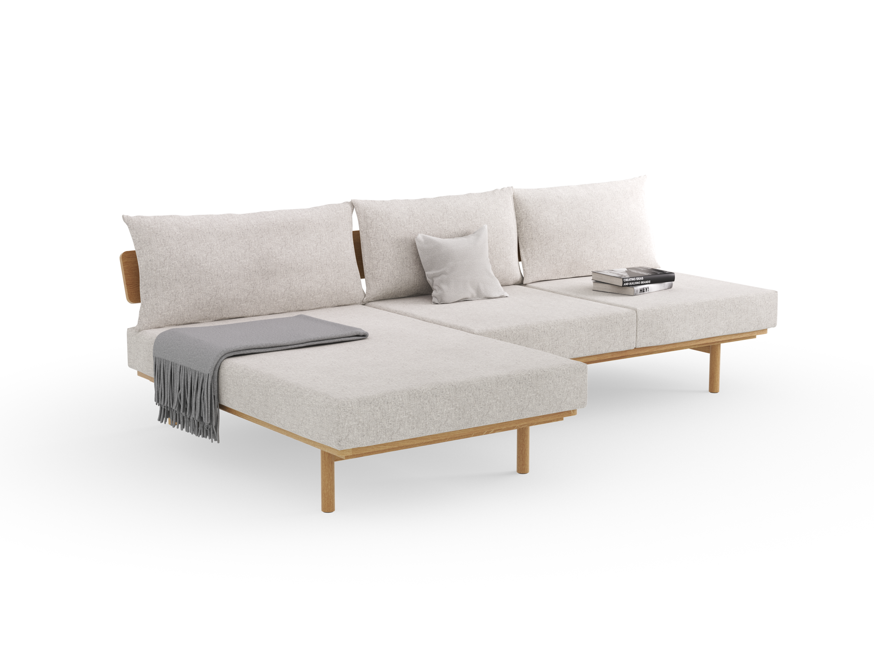 Loungesofa Lana, 260 x 160 cm mit Liegeteil links/rechts, Wollstoff Tano Natur Hell (80), Eiche