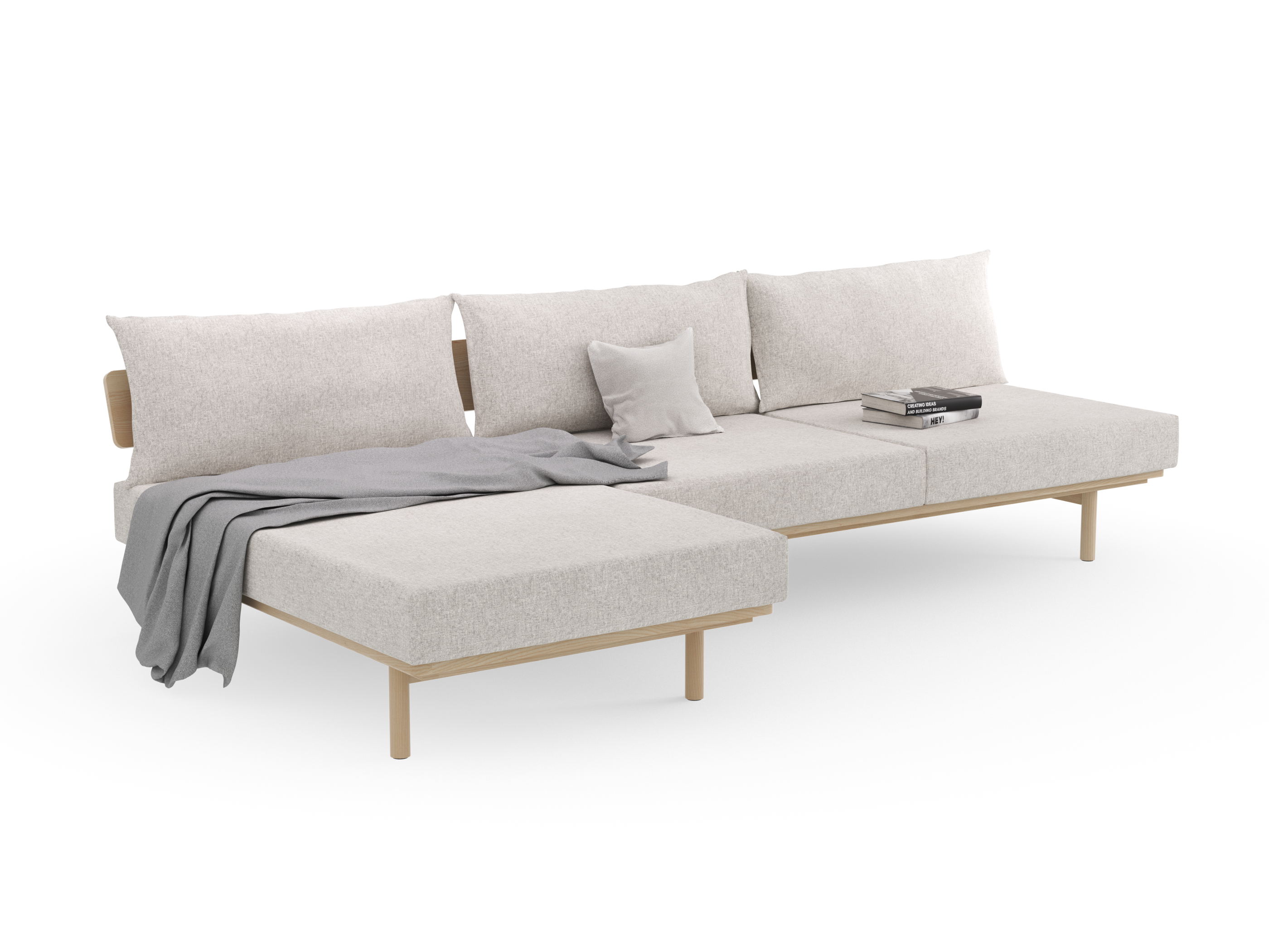Loungesofa Lana, 300 x 160 cm mit Liegeteil links/rechts, Wollstoff Tano Natur Hell (80), Esche