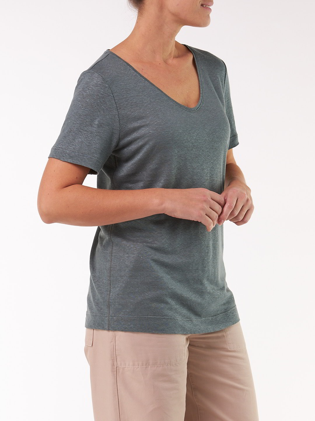 • Kurzarmshirt aus Bio Leinen, 50 thymian, 36, GOTS