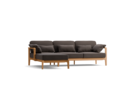 Der elegante, schlanke, feinsinnige Sofarahmen aus fix verleimtem Massivholz – mit sanften, verrundeten, fließenden Übergängen und Verbindungen – umfängt die Polsterelemente relingartig und gibt dem Sofa auch eine reizvolle Rückenansicht.-