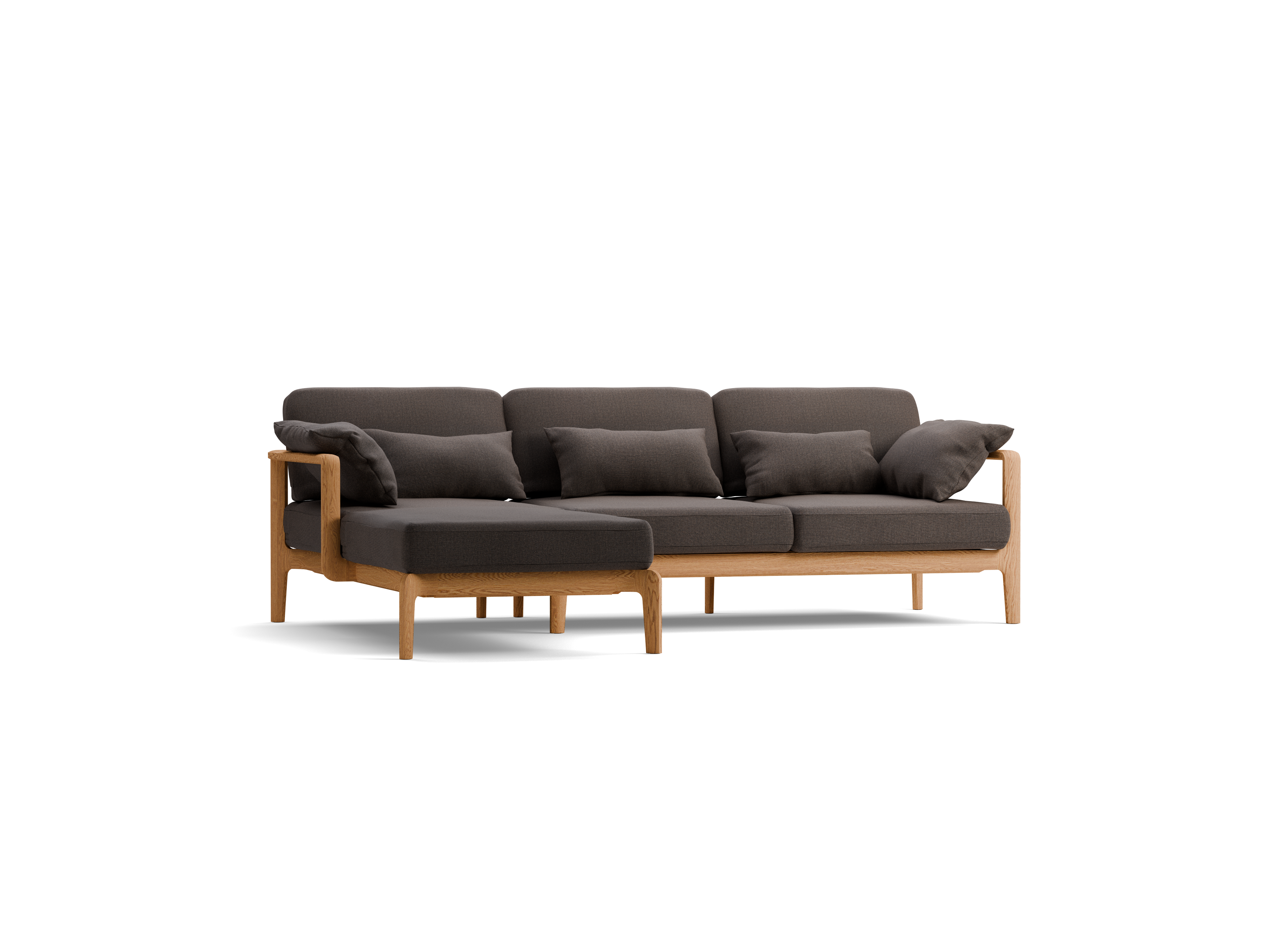 Loungesofa Linera, schmal mit Liegeteil links, Wollstoff Elverum Nougat (124), Eiche