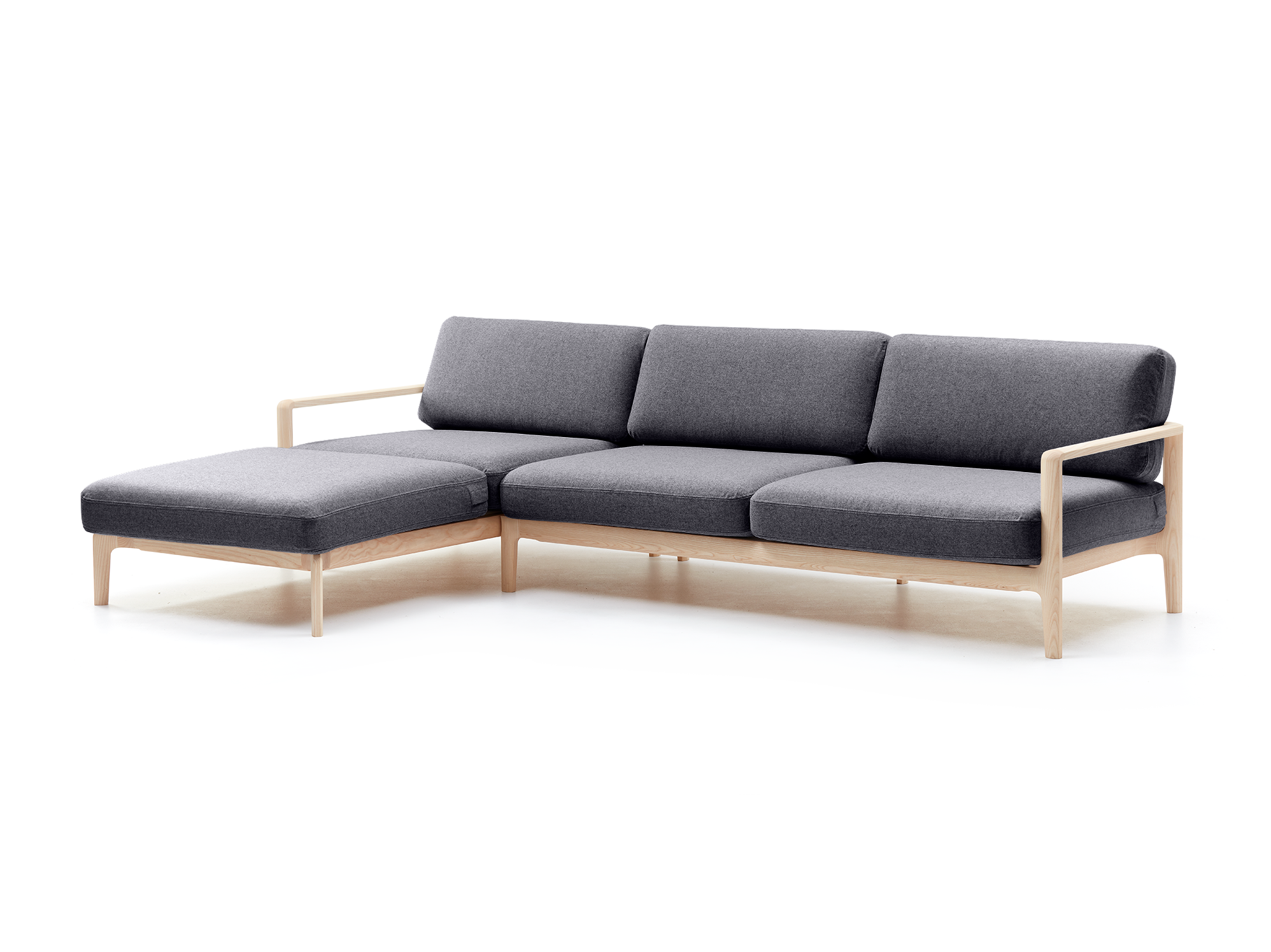 Loungesofa Linera, breit mit Liegeteil links, Wollstoff Stavang Stein (61), Esche