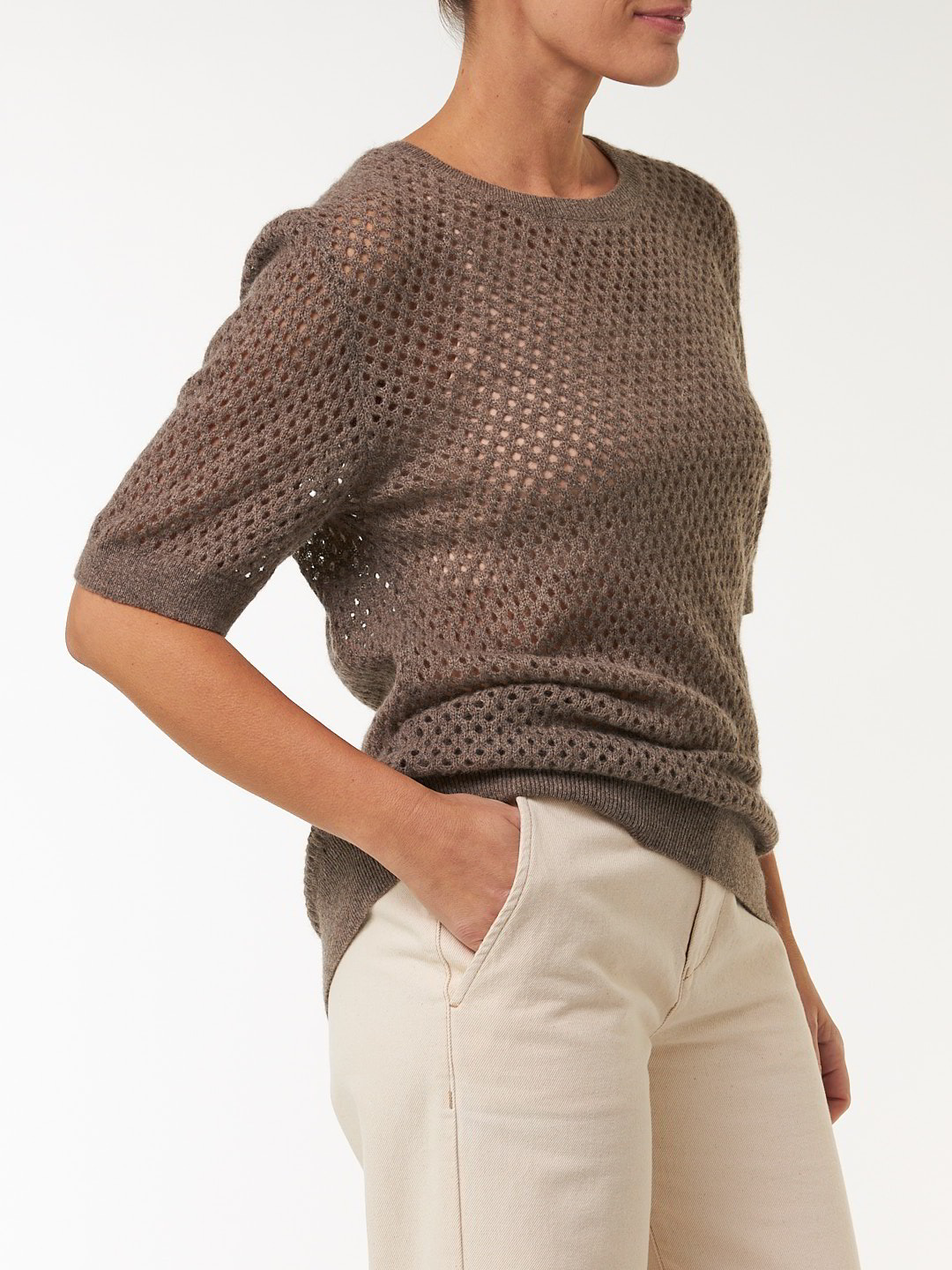 Hochwertig, elegant & besonders sanft zur HautDer Kurzarm-Pullover aus edlem Yakhaar besticht mit einer feinen Mesh-Struktur. Die lockere, luftige Passform wird mit kleinen Details – wie Rippbündchen an Saum und Ärmelabschluss – harmonisch abgerundet.Schnitt: figurumspielend. In Größe S (36/38) ca. 56 cm lang. Unsere Models sind zwischen 175 cm und 177 cm groß und tragen Kleidergröße 36.Ökologisch & fair produziertEin schönes Stück Natur, welches wir nur zu gern tragen. Dieses Kleidungsstück entsteht aus edlem Yakhaar. Es wird in größter ökologischer Sorgfalt bei unserem Partnerbetrieb gefertigt. Die gesamte Wertschöpfung bleibt im Land der Rohfaser – fair gegenüber Mensch, Tier und Natur. Um die Langlebigkeit des Naturproduktes zu erhalten, empfehlen wir einen sorgsamen und wertschätzenden Umgang im alltäglichen Gebrauch.Material: 100 % Yakhaar.Materialherkunft: Yakhaar aus der Mongolei. Gestrickt in der Mongolei. Fair gefertigt in der Mongolei. -