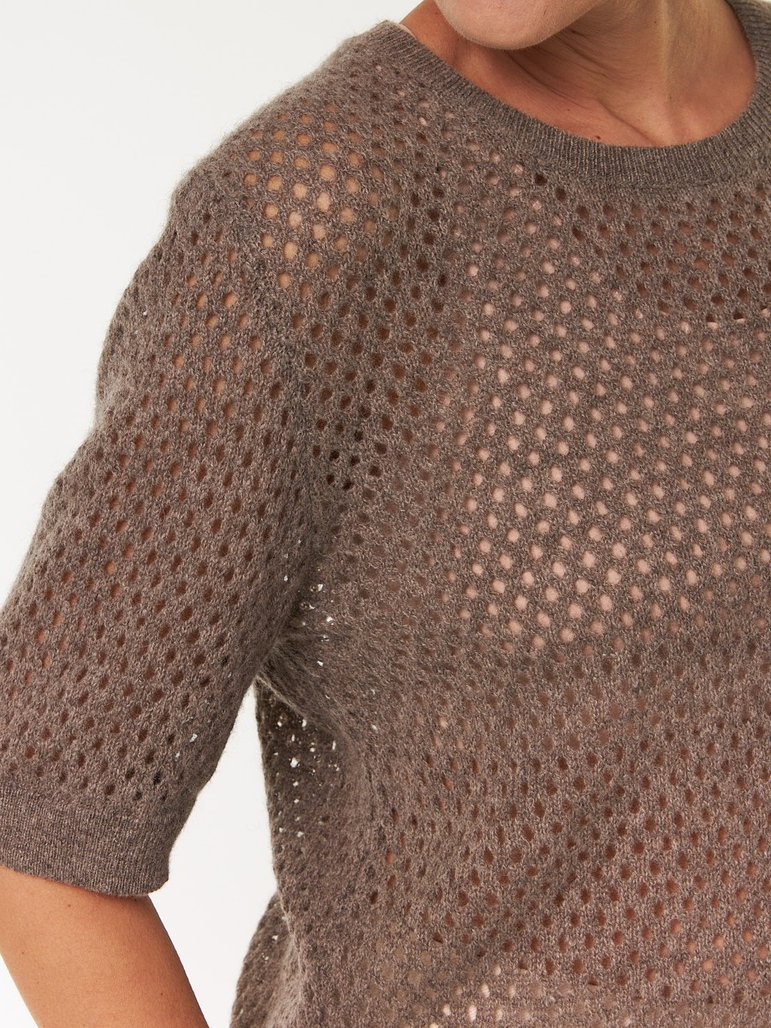 Pullover kurzarm aus Yakwolle, 64 hasel melange, M