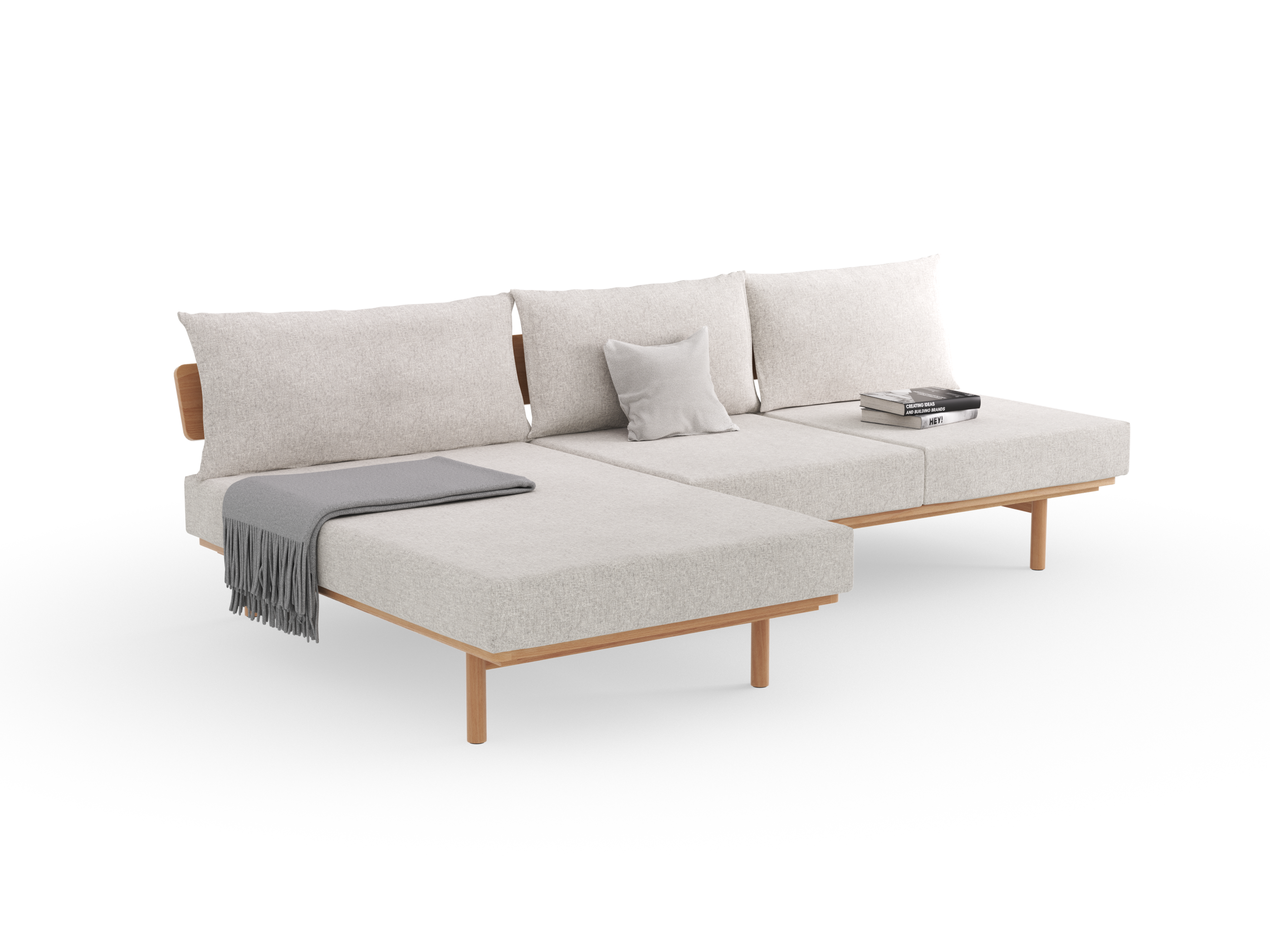 Loungesofa Lana, 260 x 160 cm mit Liegeteil links/rechts, Wollstoff Tano Natur Hell (80), Buche