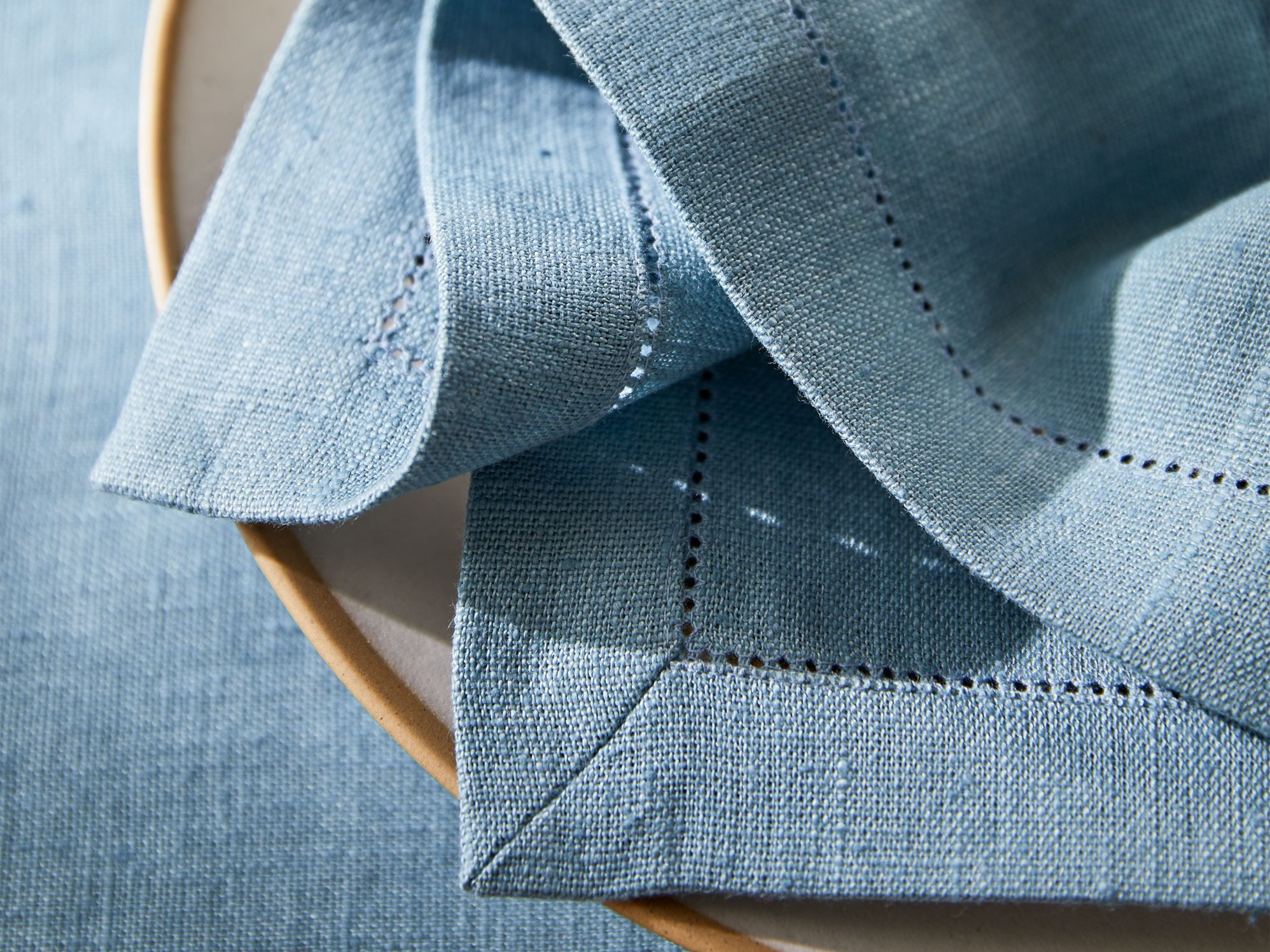 • Serviette ARIANA mit Ajour, meerblau, 40 x 40 cm, 60% Baumwolle/40% Leinen, GOTS