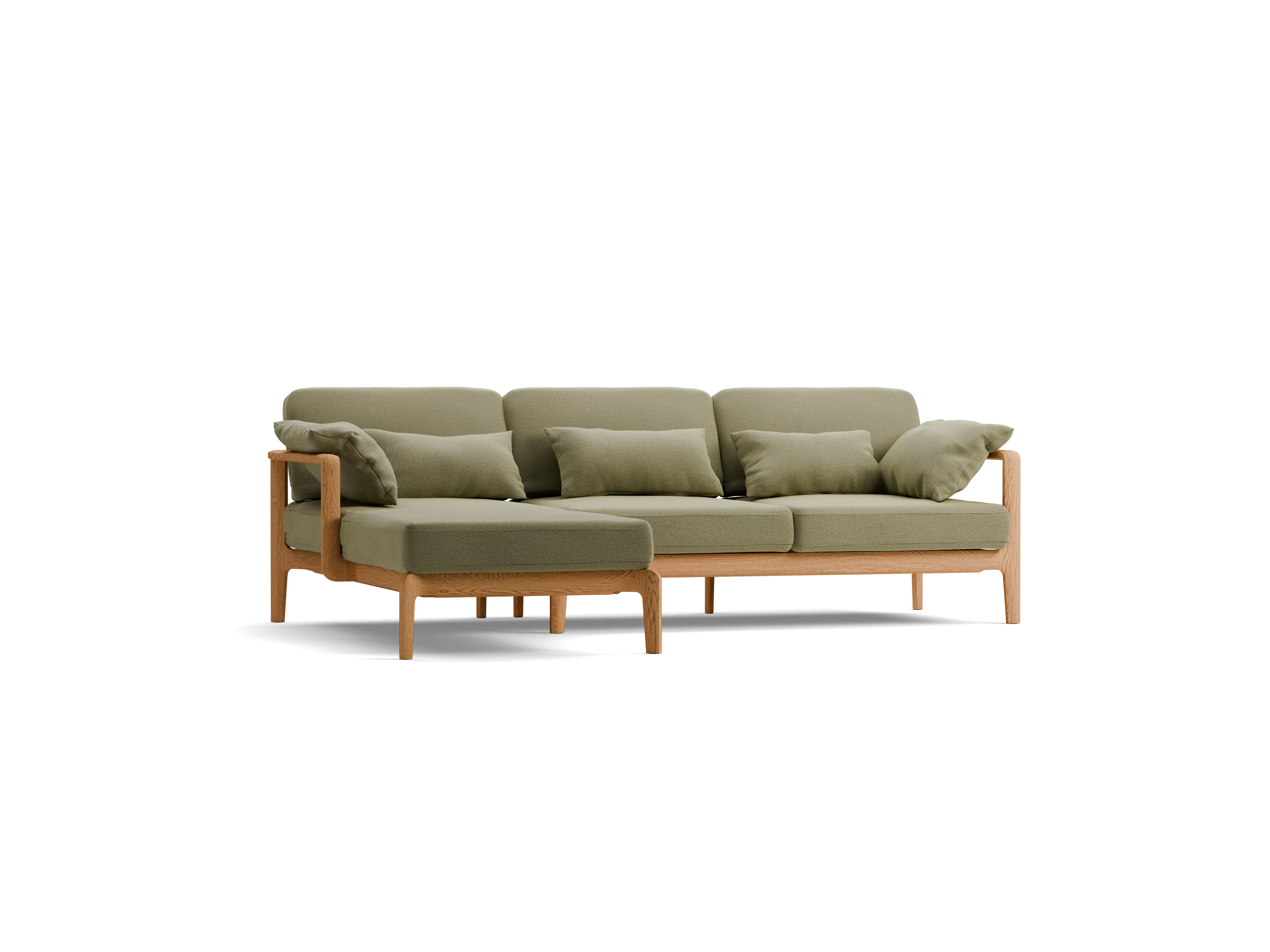 Loungesofa Linera, schmal mit Liegeteil links, Wollstoff Kaland Farn (117), Eiche