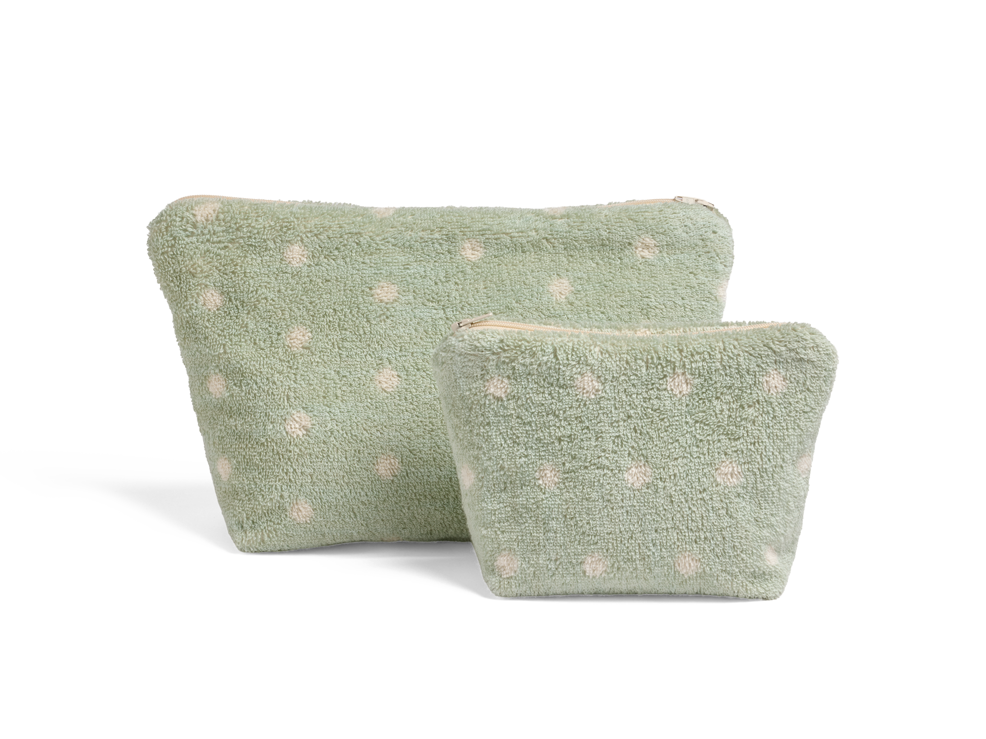 Die Aufbewahrungstaschen Pünktchen sind liebevolle Begleiter für Mamas und Kinder. Hergestellt aus weicher, saugfähiger Frottierware mit charmant eingewebtem Punkte-Dessin, vereinen sie natürliche Materialien mit funktionalem Design. Die angenehme Haptik und das zeitlose Muster machen sie zu einem stilvollen Ordnungshelfer – ob im Badezimmer, Wickelbereich oder unterwegs.