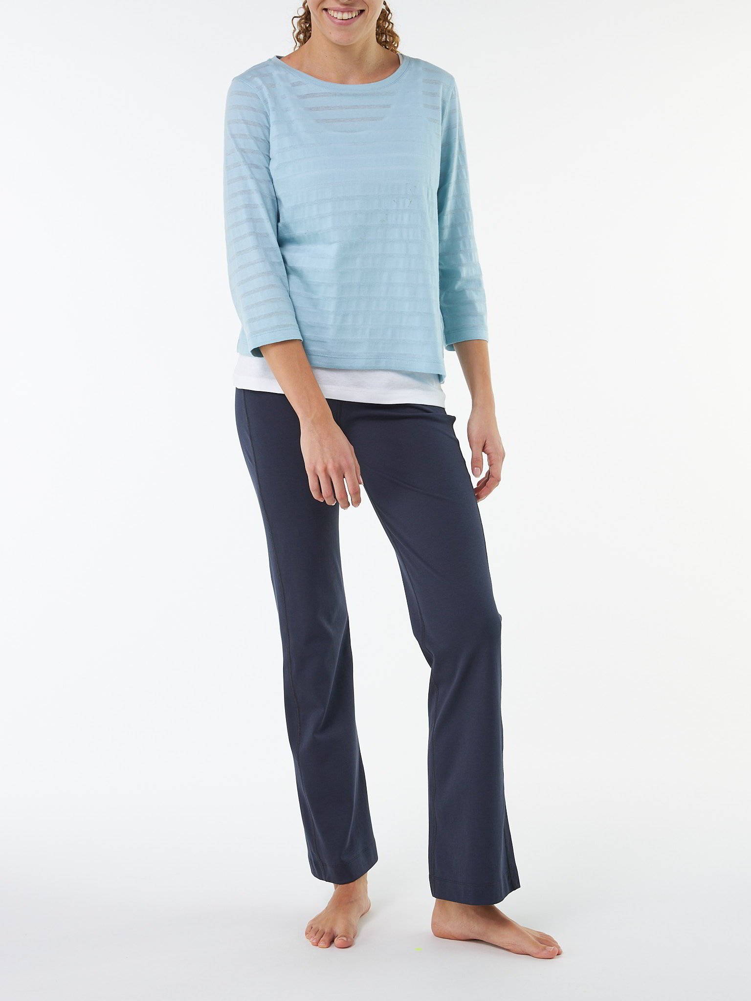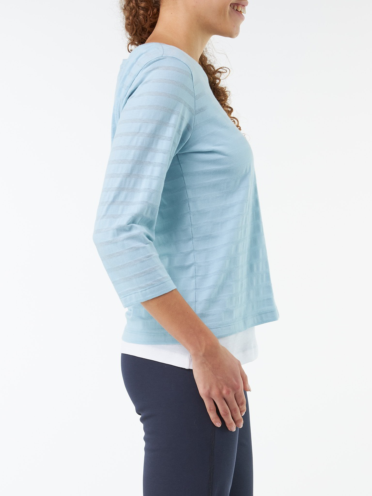 Feminine Transparenz zum KombinierenEin Highlight für warme Tage: 3/4-Arm-Shirt mit zart-transparentem Ausbrenner-Effekt. Das Modell aus weichem Baumwoll-Jersey fällt locker und angenehm auf der Haut. Der gerade Schnitt mit zartem U-Boot-Ausschnitt sorgt für eine feminine Silhouette.Schnitt: leger. In Größe S (36/38) ca. 57,5 cm lang. Unsere Models sind zwischen 175 cm und 177 cm groß und tragen Kleidergröße 36.Ökologisch & fair produziertEin schönes Stück Natur, welches wir nur zu gern tragen. Dieses Kleidungsstück entsteht aus Baumwolle kbA und wird nach strengen Richtlinien – wie dem Global Organic Textile Standard – bei unserem Partnerbetrieb gefertigt.Material: 100 % Baumwolle.Materialherkunft: Baumwolle kbA aus der Türkei. Gewirkt in Portugal. Gefertigt in Portugal nach dem GOTS. -