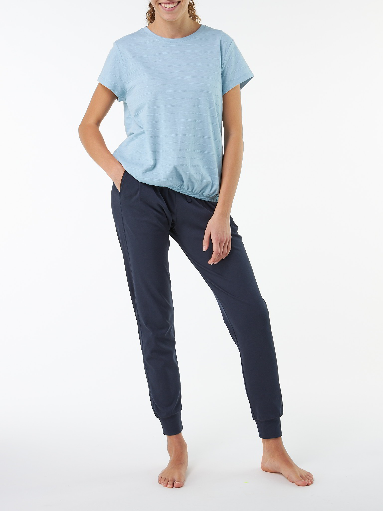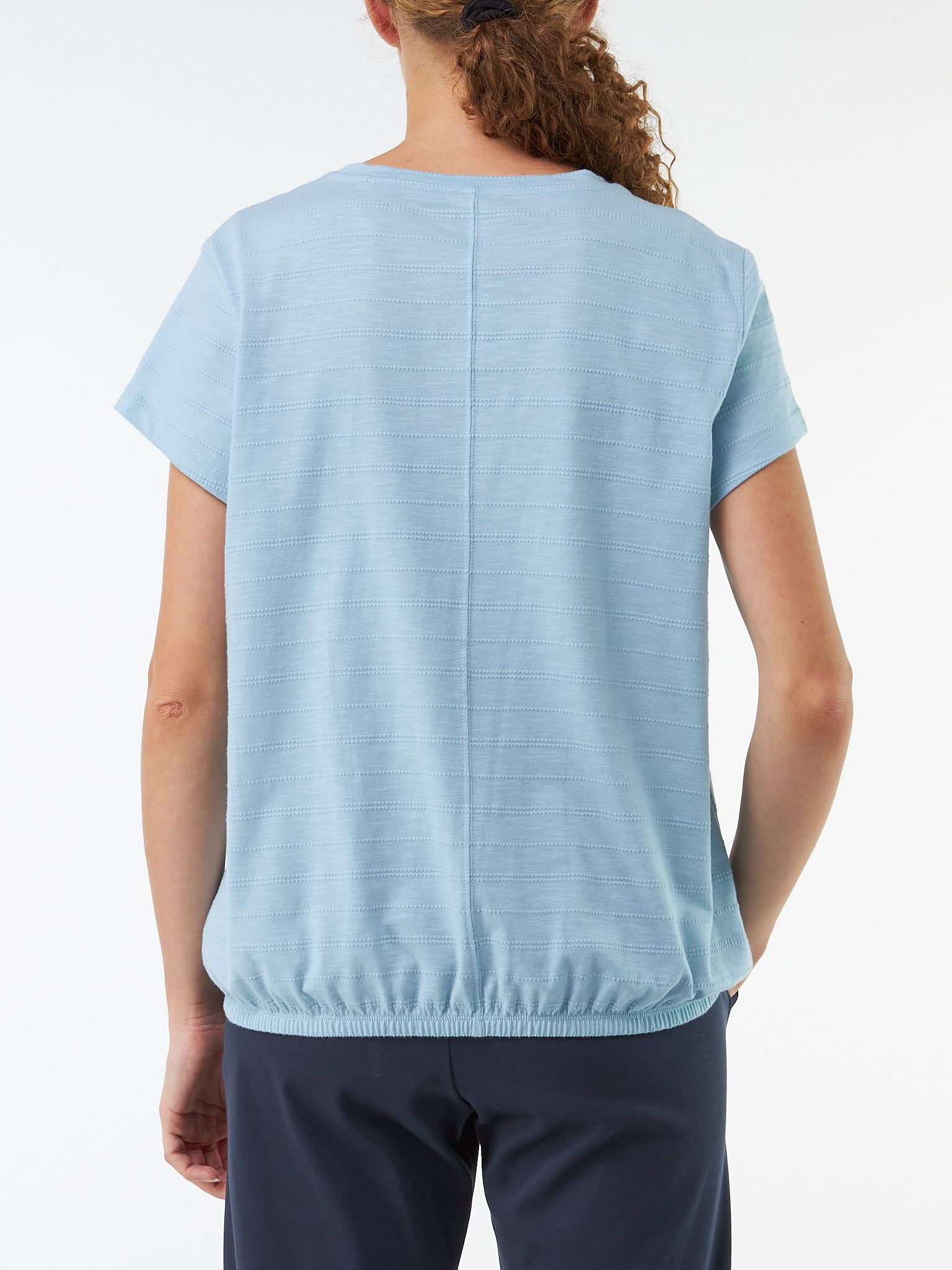 Feine Struktur, sanfter GriffLoose-Fit-Shirt mit zarter Ajour-Struktur aus angenehm-weicher Baumwoll-Qualität: Der legere O-Shape-Schnitt mit Mittelnaht auf der Rückseite und Gummizug am Saum sorgt für eine moderne Silhouette. V-Ausschnitt und ein elastischer Bund am Saum verleihen dem Shirt eine feminine Leichtigkeit – ein unkomplizierter Allrounder für jeden Tag.Schnitt: leger. In Größe S (36/38) ca. 60 cm lang. Unsere Models sind zwischen 175 cm und 177 cm groß und tragen Kleidergröße S.Ökologisch & fair produziertEin schönes Stück Natur, welches wir nur zu gern tragen. Dieses Kleidungsstück entsteht aus Baumwolle kbA und wird nach strengen Richtlinien – wie dem Global Organic Textile Standard – bei unserem Partnerbetrieb gefertigt.Material: 100 % Baumwolle.Materialherkunft: Baumwolle kbA aus der Türkei. Gewirkt in Portugal. Gefertigt in Portugal nach dem GOTS. -