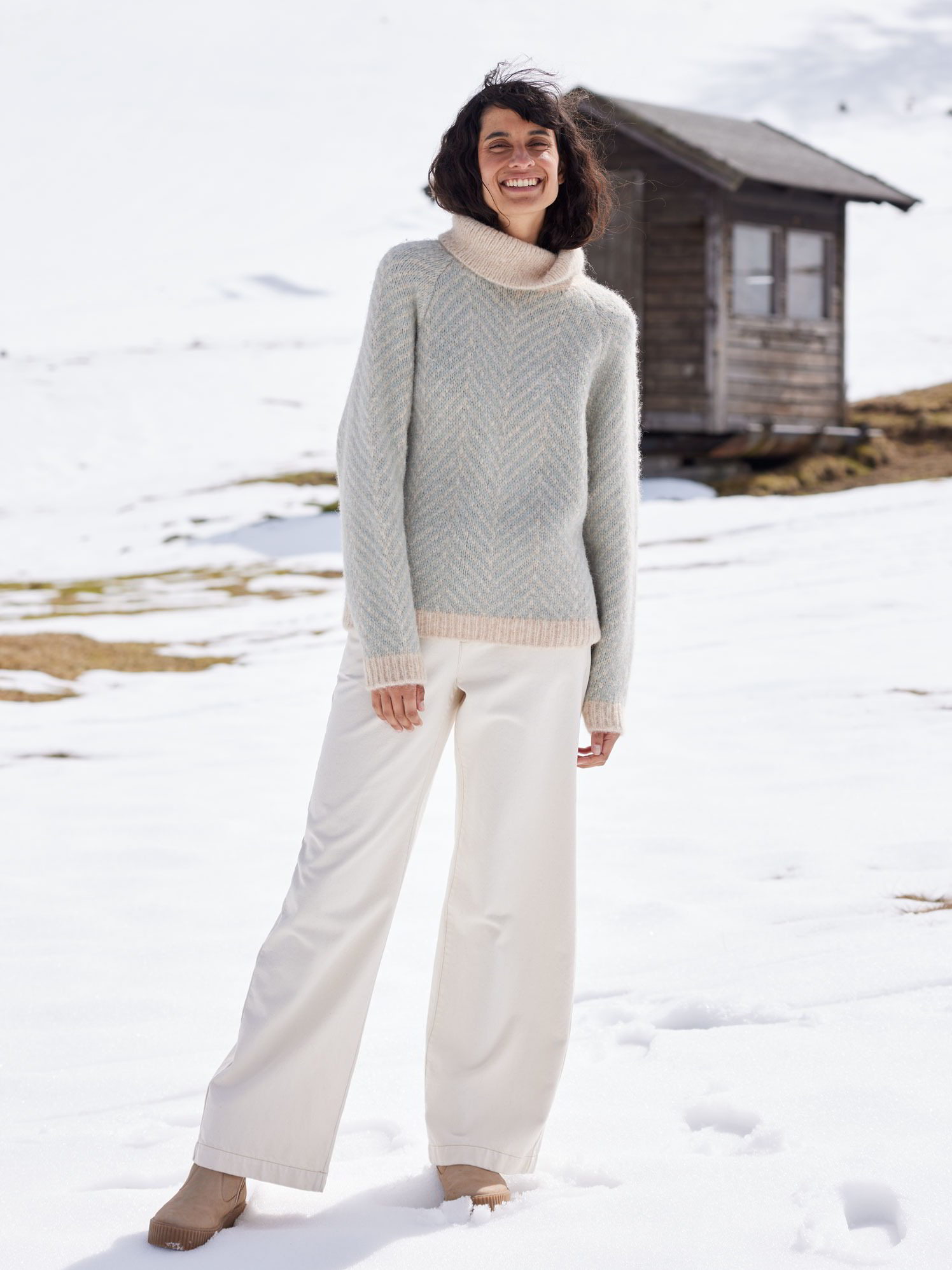 Nordisch inspiriert, aus Naturmaterialien erschaffenGrobstrick-Pullover aus hochwertiger Alpaka-Baumwoll-Mischung: kuschelig-weich, wärmend und hautfreundlich. Das locker geschnittene Modell mit der modischen Fischgrat-Dessinierung und dem farblich hervorgehobenen, voluminösen Rollkragen steht für pure Geborgenheit. Mit losem Saum und schmal zulaufenden Raglanärmeln mit abgesetzten Bündchen.Schnitt: leger. In Größe S (36/38) ca. 62 cm lang. Unsere Models sind zwischen 175 cm und 177 cm groß und tragen Kleidergröße S.Ökologisch & fair produziertEin schönes Stück Natur, welches wir nur zu gern tragen. Dieses Kleidungsstück entsteht aus der Kombination zweier Naturmaterialien: edle Alpakawolle und weiche Baumwolle kbA. Es wird in größter ökologischer Sorgfalt bei unserem Partnerbetrieb gefertigt. Die gesamte Wertschöpfung bleibt im Land der Rohfaser – fair gegenüber Mensch, Tier und Natur. Um die Langlebigkeit des Naturproduktes zu erhalten, empfehlen wir einen sorgsamen und wertschätzenden Umgang im alltäglichen Gebrauch.Material: 56 % Alpakawolle, 44 % Baumwolle.Materialherkunft: Alpakawolle aus Peru. Baumwolle kbA aus Peru. Gestrickt in Peru. Gefertigt in Peru. -