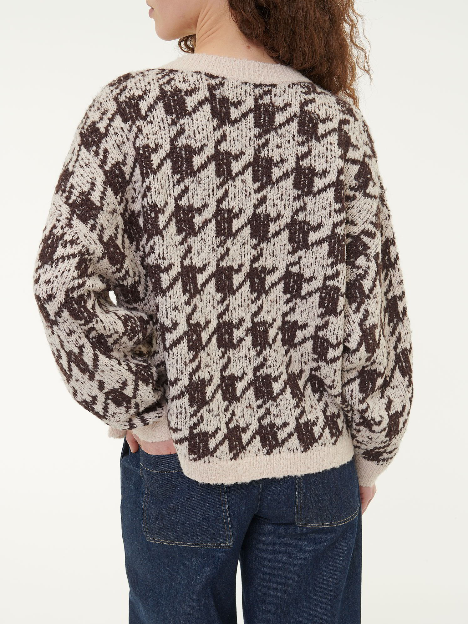 Ein Must-Have für die kühlere SaisonWarmer Strickpullover in hochwertiger Bouclé-Qualität mit weichem Griff – gefertigt aus reiner Alpakawolle. Der markante Hahnentritt in Kombination mit einer legeren Passform wirkt stilvoll, gemütlich und zeitlos. Breite Rippbündchen an den Abschlüssen unterstreichen den lässigen Charakter, während die strukturierte Oberfläche dem Modell Tiefe und Ausdruck verleiht.Schnitt: oversize. In Größe S (36/38) ca. 55 cm lang. Unsere Models sind zwischen 175 cm und 177 cm groß und tragen Kleidergröße S.Ökologisch & fair produziertEin schönes Stück Natur, welches wir nur zu gern tragen. Dieses Kleidungsstück entsteht aus edler Alpakawolle und wird in größter ökologischer Sorgfalt bei unserem Partnerbetrieb gefertigt. Die gesamte Wertschöpfung bleibt im Land der Rohfaser – fair gegenüber Mensch, Tier und Natur. Um die Langlebigkeit des Naturproduktes zu erhalten, empfehlen wir einen sorgsamen und wertschätzenden Umgang im alltäglichen Gebrauch.Material: 100 % Alpakawolle.Materialherkunft: Alpakawolle aus Peru. Gestrickt in Peru. Gefertigt in Peru. -