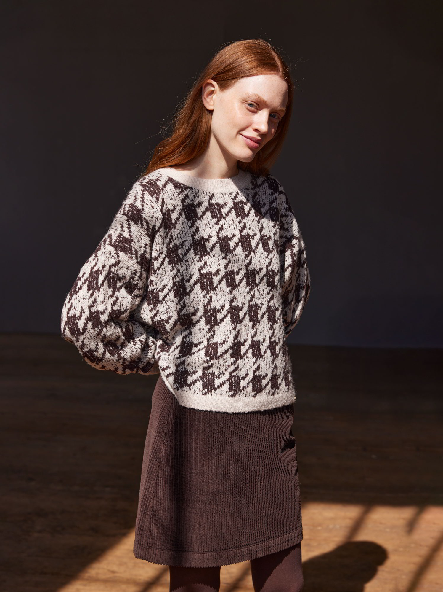 Ein Must-Have für die kühlere SaisonWarmer Strickpullover in hochwertiger Bouclé-Qualität mit weichem Griff – gefertigt aus reiner Alpakawolle. Der markante Hahnentritt in Kombination mit einer legeren Passform wirkt stilvoll, gemütlich und zeitlos. Breite Rippbündchen an den Abschlüssen unterstreichen den lässigen Charakter, während die strukturierte Oberfläche dem Modell Tiefe und Ausdruck verleiht.Schnitt: oversize. In Größe S (36/38) ca. 55 cm lang. Unsere Models sind zwischen 175 cm und 177 cm groß und tragen Kleidergröße S.Ökologisch & fair produziertEin schönes Stück Natur, welches wir nur zu gern tragen. Dieses Kleidungsstück entsteht aus edler Alpakawolle und wird in größter ökologischer Sorgfalt bei unserem Partnerbetrieb gefertigt. Die gesamte Wertschöpfung bleibt im Land der Rohfaser – fair gegenüber Mensch, Tier und Natur. Um die Langlebigkeit des Naturproduktes zu erhalten, empfehlen wir einen sorgsamen und wertschätzenden Umgang im alltäglichen Gebrauch.Material: 100 % Alpakawolle.Materialherkunft: Alpakawolle aus Peru. Gestrickt in Peru. Gefertigt in Peru. -