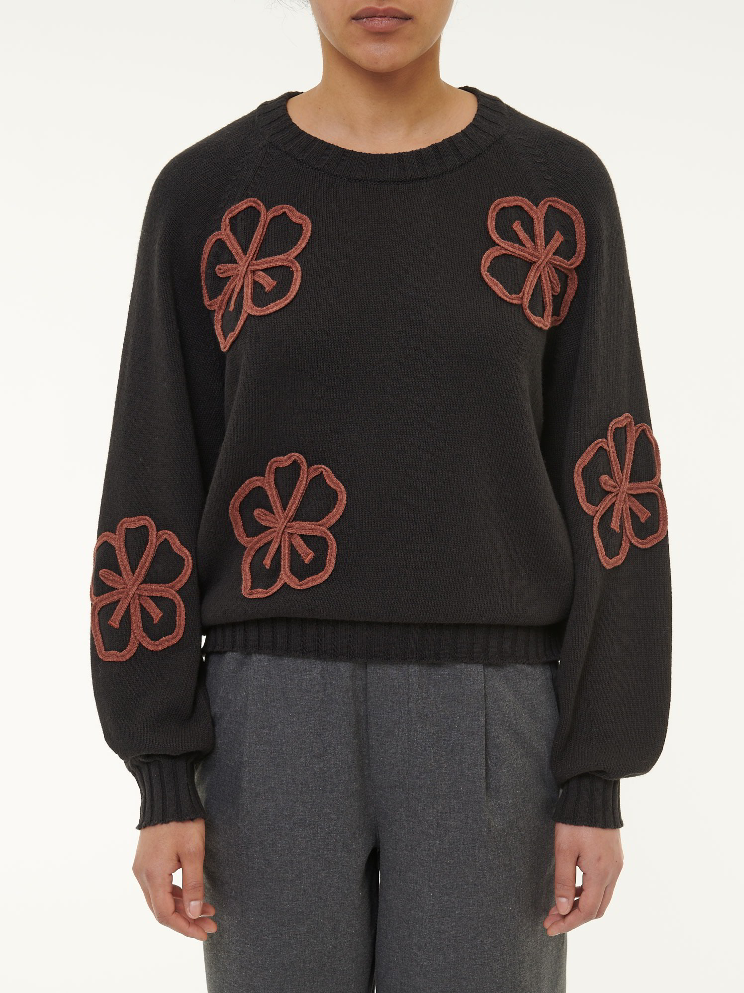 - mit aufgenähtem Blumenmotiv