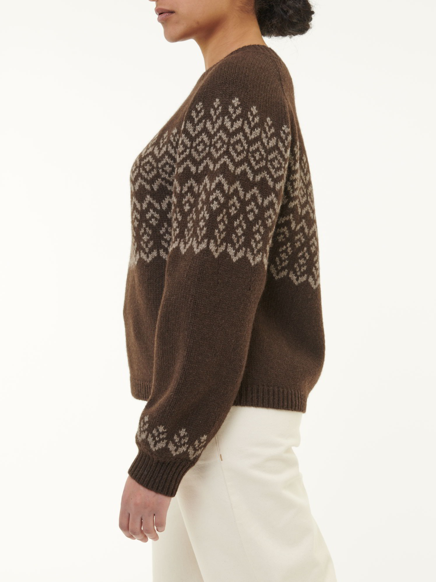 Naturbelassen, nordisch inspiriert, unaufdringlichDer Pullover aus reiner, ungefärbter Yakwolle verbindet zurückhaltendes Design mit spürbarer Qualität. Das wertvolle Naturmaterial liegt weich auf der Haut, hält angenehm warm und bleibt dabei atmungsaktiv. Die feine Norweger-Passe setzt einen dezenten, nordisch inspirierten Akzent, ohne aufdringlich zu wirken – stilvoll, aber reduziert. Leger geschnitten mit Strickbündchen an allen Abschlüssen.Schnitt: leger. In Größe S (36/38) ca. 59 cm lang. Unsere Models sind zwischen 175 cm und 177 cm groß und tragen Kleidergröße S.Ökologisch & fair produziertEin schönes Stück Natur, welches wir nur zu gern tragen. Dieses Kleidungsstück entsteht aus kostbarer Yakwolle und wird in größter ökologischer Sorgfalt bei unserem Partnerbetrieb gefertigt. Die gesamte Wertschöpfung bleibt im Land der Rohfaser – fair gegenüber Mensch, Tier und Natur. Um die Langlebigkeit des Naturproduktes zu erhalten, empfehlen wir einen sorgsamen und wertschätzenden Umgang im alltäglichen Gebrauch.Material: 100 % Yakwolle.Materialherkunft: Yakwolle aus der Mongolei. Gestrickt in der Mongolei. Gefertigt in der Mongolei. -