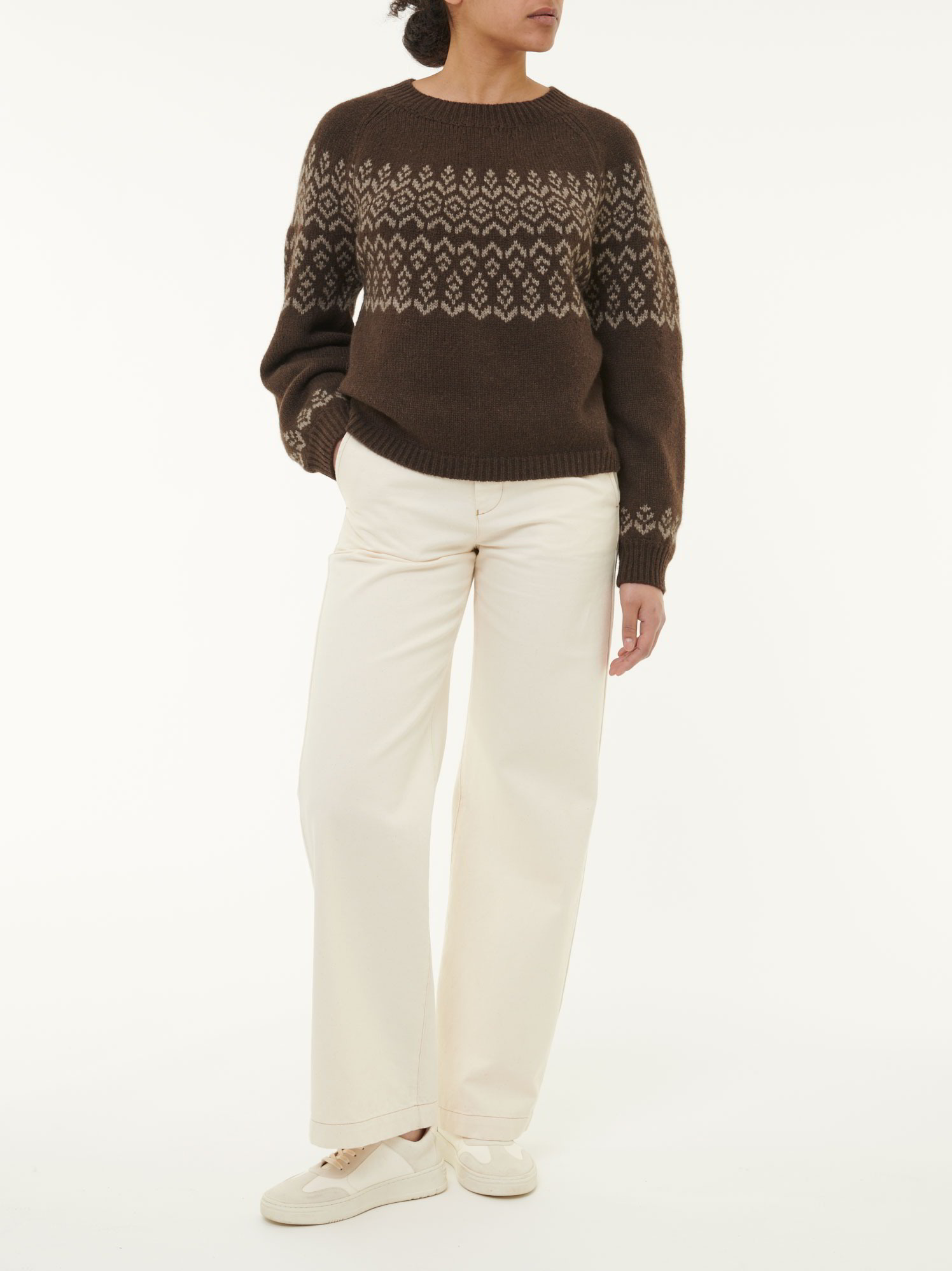 Naturbelassen, nordisch inspiriert, unaufdringlichDer Pullover aus reiner, ungefärbter Yakwolle verbindet zurückhaltendes Design mit spürbarer Qualität. Das wertvolle Naturmaterial liegt weich auf der Haut, hält angenehm warm und bleibt dabei atmungsaktiv. Die feine Norweger-Passe setzt einen dezenten, nordisch inspirierten Akzent, ohne aufdringlich zu wirken – stilvoll, aber reduziert. Leger geschnitten mit Strickbündchen an allen Abschlüssen.Schnitt: leger. In Größe S (36/38) ca. 59 cm lang. Unsere Models sind zwischen 175 cm und 177 cm groß und tragen Kleidergröße S.Ökologisch & fair produziertEin schönes Stück Natur, welches wir nur zu gern tragen. Dieses Kleidungsstück entsteht aus kostbarer Yakwolle und wird in größter ökologischer Sorgfalt bei unserem Partnerbetrieb gefertigt. Die gesamte Wertschöpfung bleibt im Land der Rohfaser – fair gegenüber Mensch, Tier und Natur. Um die Langlebigkeit des Naturproduktes zu erhalten, empfehlen wir einen sorgsamen und wertschätzenden Umgang im alltäglichen Gebrauch.Material: 100 % Yakwolle.Materialherkunft: Yakwolle aus der Mongolei. Gestrickt in der Mongolei. Gefertigt in der Mongolei. -
