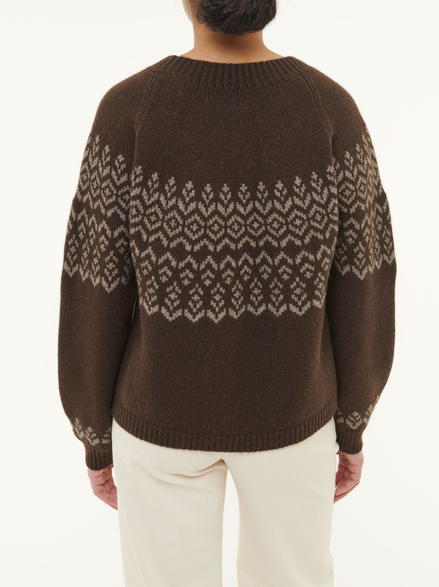 Naturbelassen, nordisch inspiriert, unaufdringlichDer Pullover aus reiner, ungefärbter Yakwolle verbindet zurückhaltendes Design mit spürbarer Qualität. Das wertvolle Naturmaterial liegt weich auf der Haut, hält angenehm warm und bleibt dabei atmungsaktiv. Die feine Norweger-Passe setzt einen dezenten, nordisch inspirierten Akzent, ohne aufdringlich zu wirken – stilvoll, aber reduziert. Leger geschnitten mit Strickbündchen an allen Abschlüssen.Schnitt: leger. In Größe S (36/38) ca. 59 cm lang. Unsere Models sind zwischen 175 cm und 177 cm groß und tragen Kleidergröße S.Ökologisch & fair produziertEin schönes Stück Natur, welches wir nur zu gern tragen. Dieses Kleidungsstück entsteht aus kostbarer Yakwolle und wird in größter ökologischer Sorgfalt bei unserem Partnerbetrieb gefertigt. Die gesamte Wertschöpfung bleibt im Land der Rohfaser – fair gegenüber Mensch, Tier und Natur. Um die Langlebigkeit des Naturproduktes zu erhalten, empfehlen wir einen sorgsamen und wertschätzenden Umgang im alltäglichen Gebrauch.Material: 100 % Yakwolle.Materialherkunft: Yakwolle aus der Mongolei. Gestrickt in der Mongolei. Gefertigt in der Mongolei. -