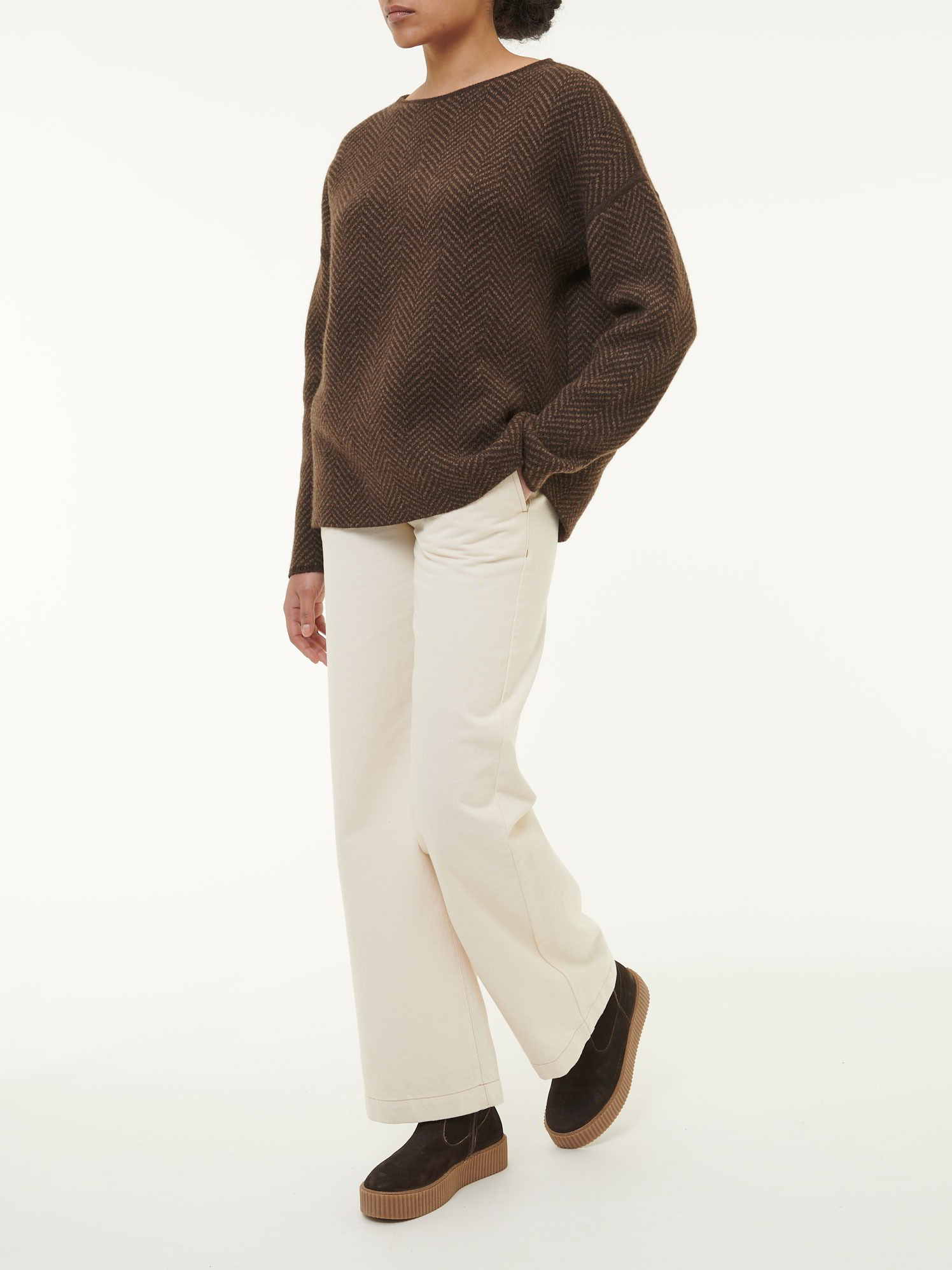 Elegante Fischgrat-Dessinierung, erdende FarbenUngefärbter Strickpullover, der Natürlichkeit mit Komfort und Qualität vereint. Die weite Passform, die breite Fischgrat-Dessinierung, der runde Tubular-Halsausschnitt und die überschnittenen Schulterpartien verleihen dem Modell aus hochwertiger Yakwolle eine elegante Optik. Dank feinster Textur ein gemütliches Must-Have für jeden Tag! Das Besondere: Der Pullover besticht mit einer praktischen Wendefunktion. Entsprechend sind die Nähte sehr fein gearbeitet.Schnitt: oversize. In Größe S (36/38) ca. 62 cm lang. Unsere Models sind zwischen 175 cm und 177 cm groß und tragen Kleidergröße S.Ökologisch & fair produziertEin schönes Stück Natur, welches wir nur zu gern tragen. Dieses Kleidungsstück entsteht aus kostbarer Yakwolle und wird in größter ökologischer Sorgfalt bei unserem Partnerbetrieb gefertigt. Die gesamte Wertschöpfung bleibt im Land der Rohfaser – fair gegenüber Mensch, Tier und Natur. Um die Langlebigkeit des Naturproduktes zu erhalten, empfehlen wir einen sorgsamen und wertschätzenden Umgang im alltäglichen Gebrauch.Material: 100 % Yakwolle.Materialherkunft: Yakwolle aus der Mongolei. Gestrickt in der Mongolei. Gefertigt in der Mongolei. -