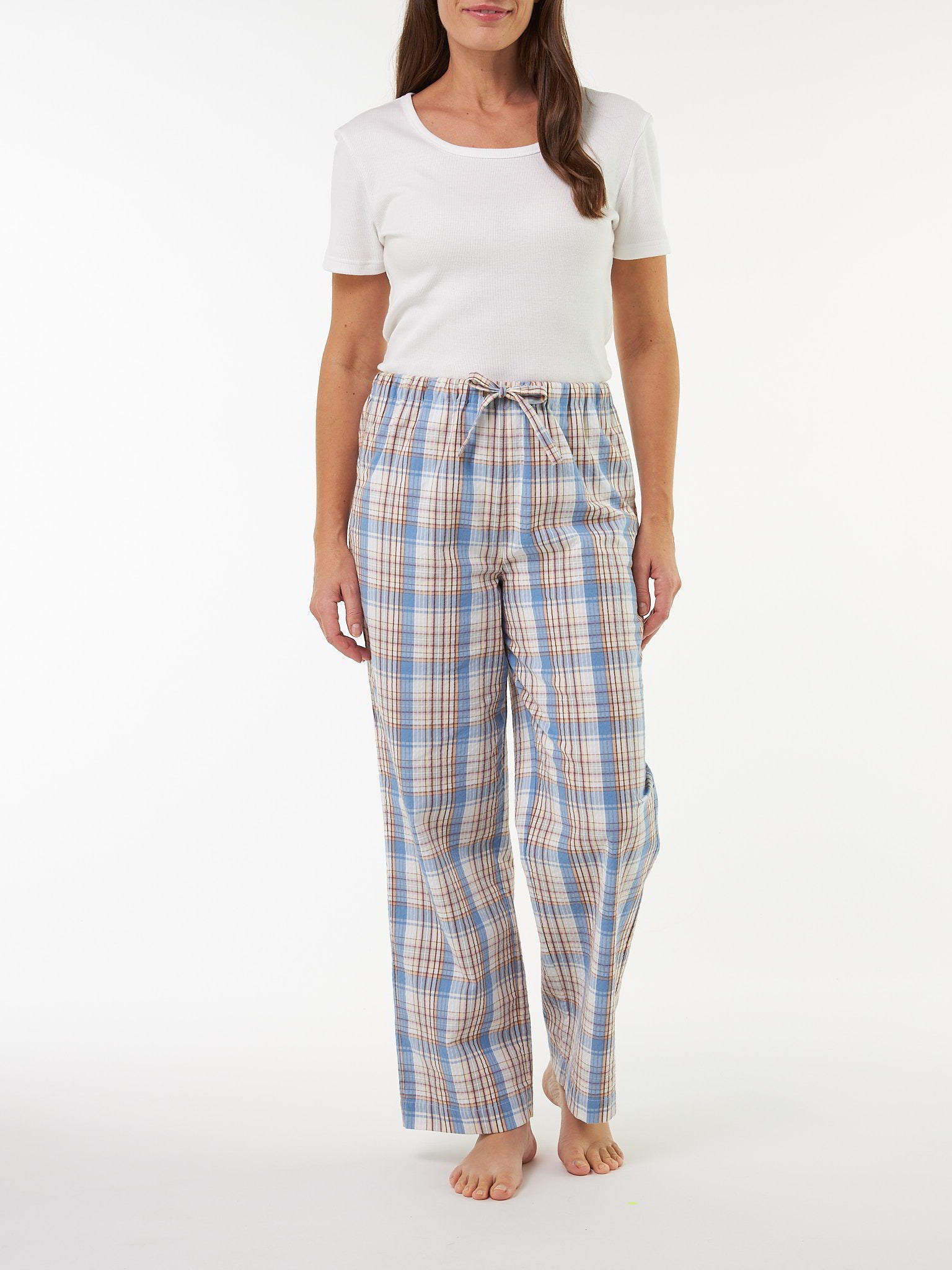Leichte Schlafhose in ökologischer Seersucker-Qualität aus hautfreundlicher Baumwolle: luftig, bequem und wunderbar pflegeleicht. Das Modell zeigt sich mit schmalem Bein, elastischem Bund und integriertem Kordelzug für individuelle Weitenregulierung. Das charakteristische Karo-Dessin unterstreicht den natürlichen Charme der Seersucker-Struktur – ideal für erholsamen Schlaf und entspannte Stunden zu Hause.