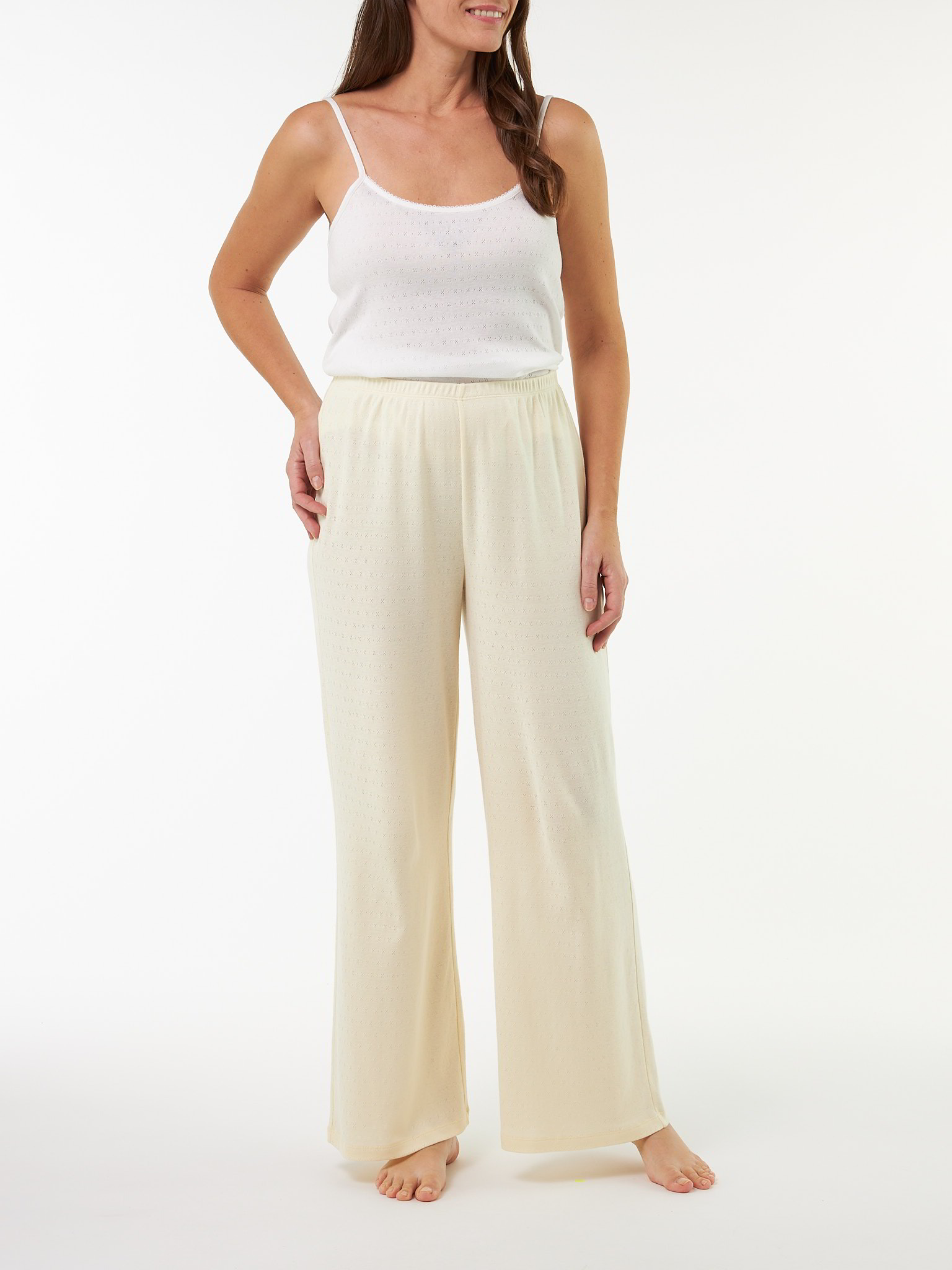 Für ein zartes Gefühl und eine feminine SilhouetteGarantiert ein Lieblingsstück: Schlafhose aus hochwertiger, weicher Baumwolle. Das Modell mit der feinen Ajour-Dessinierung überzeugt mit seiner zarten Optik und dem weichen Griff – garantiert ökologisch & sozial fair! Abgerundet mit Gummizug im Bund.Schnitt: weit/klassik/lang. Innenbeinlänge in Größe S (36/38) ca. 73 cm. Unsere Models sind zwischen 175 cm und 177 cm groß und tragen Kleidergröße S.Ökologisch & fair produziertEin schönes Stück Natur, welches wir nur zu gern tragen. Dieses Kleidungsstück entsteht aus Baumwolle kbA und wird nach strengen Richtlinien – wie dem Global Organic Textile Standard – bei unserem Partnerbetrieb gefertigt.Material: 100 % Baumwolle.Materialherkunft: Baumwolle kbA aus Griechenland. Gewirkt in Griechenland. Gefertigt in Bulgarien nach dem GOTS. -