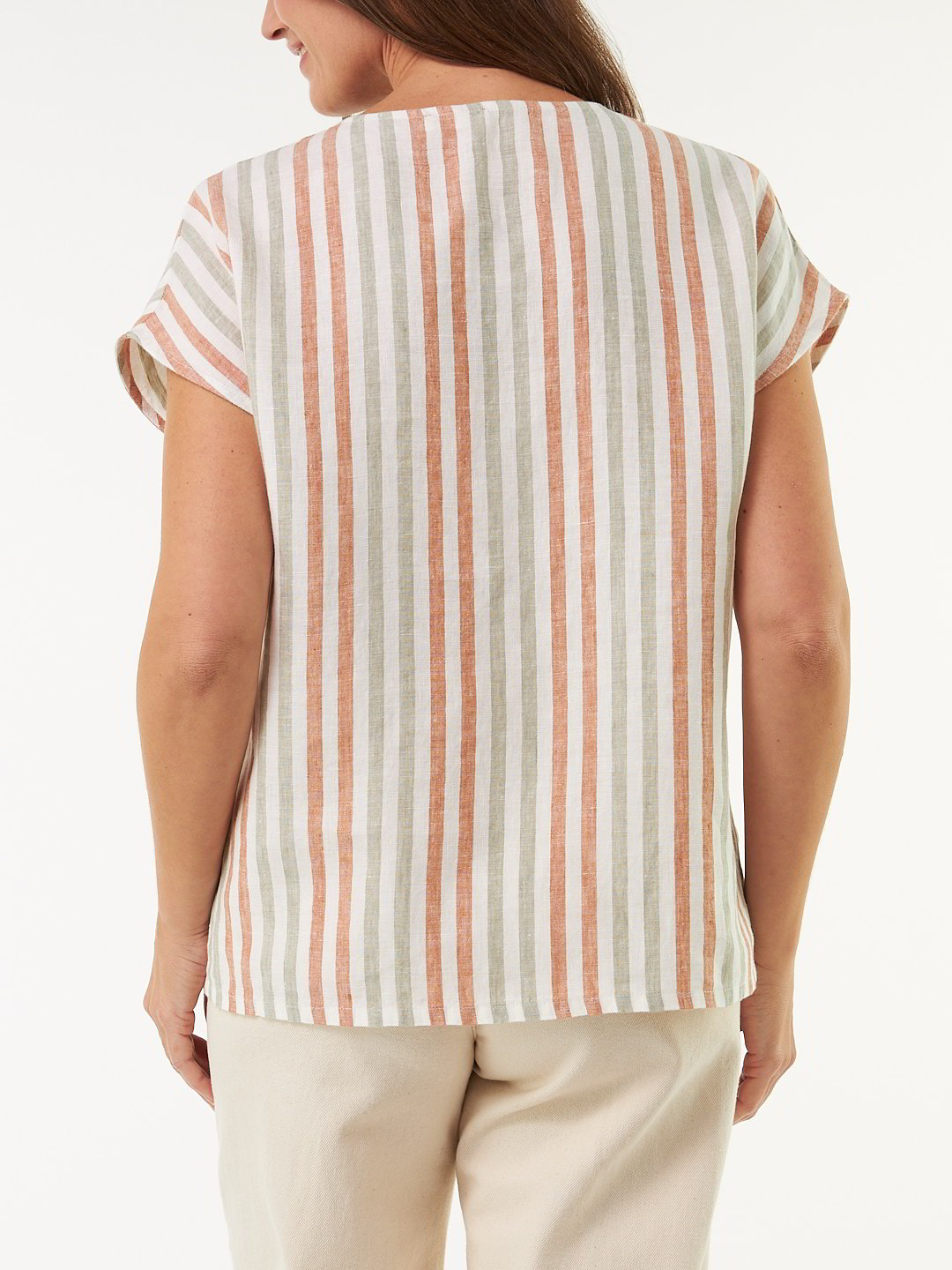 Leinen mit subtiler RaffinesseDie Schlupfbluse aus hochwertigem Leinen überzeugt durch ihre leichte, fließende Qualität und eine dezente Faltenlegung am V-Ausschnitt. Stark überschnittene Schultern verleihen dem Modell eine moderne, lässig-elegante Silhouette. Eine feine Streifen-Dessinierung rundet das Modell harmonisch ab.Schnitt: sehr leger. In Größe 36 ca. 61 cm lang. Unsere Models sind zwischen 175 cm und 177 cm groß und tragen Kleidergröße S.Ökologisch & fair produziertEin schönes Stück Natur, welches wir nur zu gern tragen. Dieses Kleidungsstück entsteht aus edlem Leinen kbA und wird nach strengen Richtlinien – wie dem Global Organic Textile Standard – bei unserem Partnerbetrieb gefertigt.Material: 100 % Leinen.Materialherkunft: Leinen kbA aus Frankreich. Gewebt in Italien. Gefertigt in Portugal nach dem GOTS. -