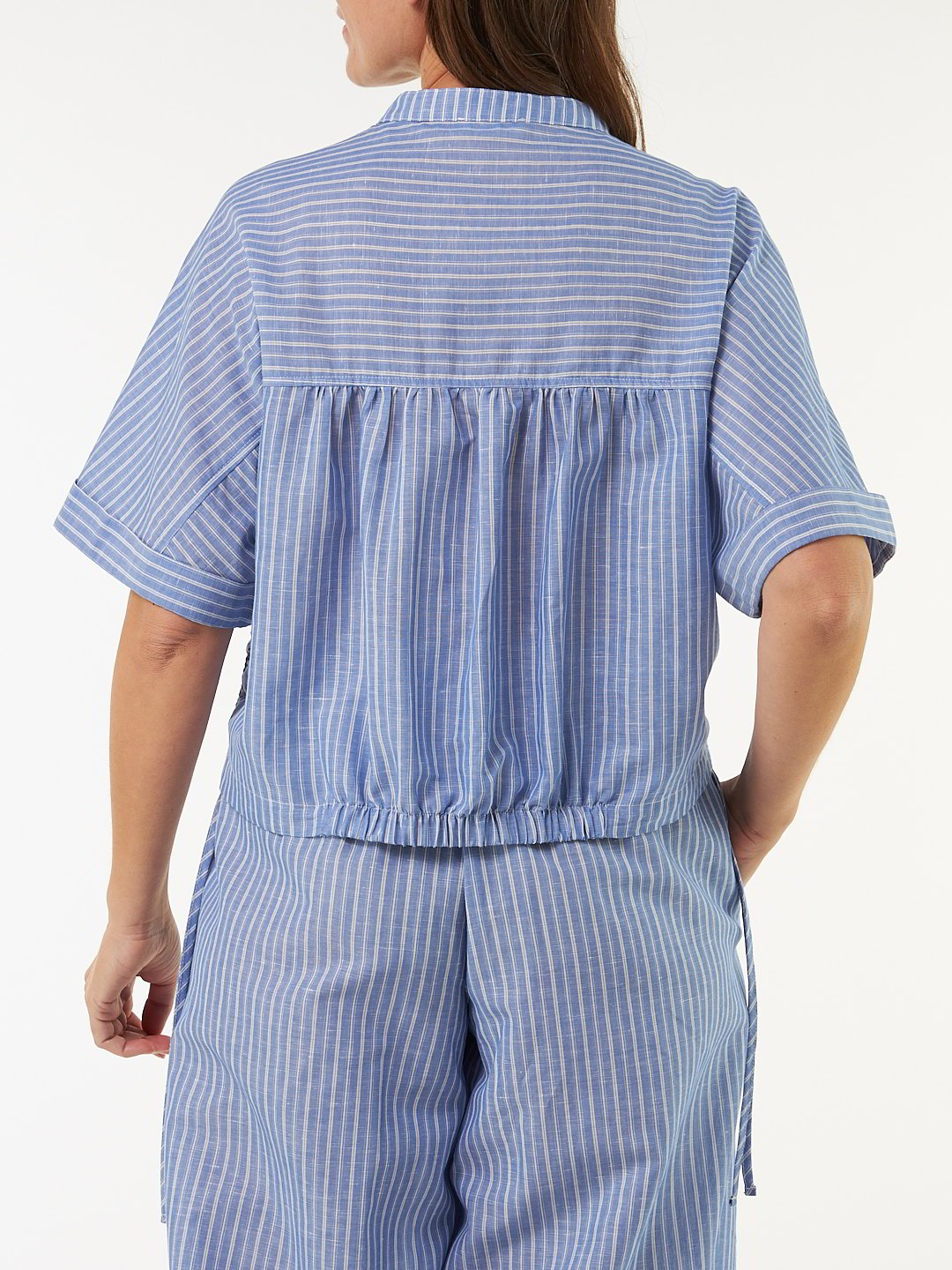 Bluse aus Bio Baumwolle und Leinen, 32 blau/weiss streif, 36, GOTS