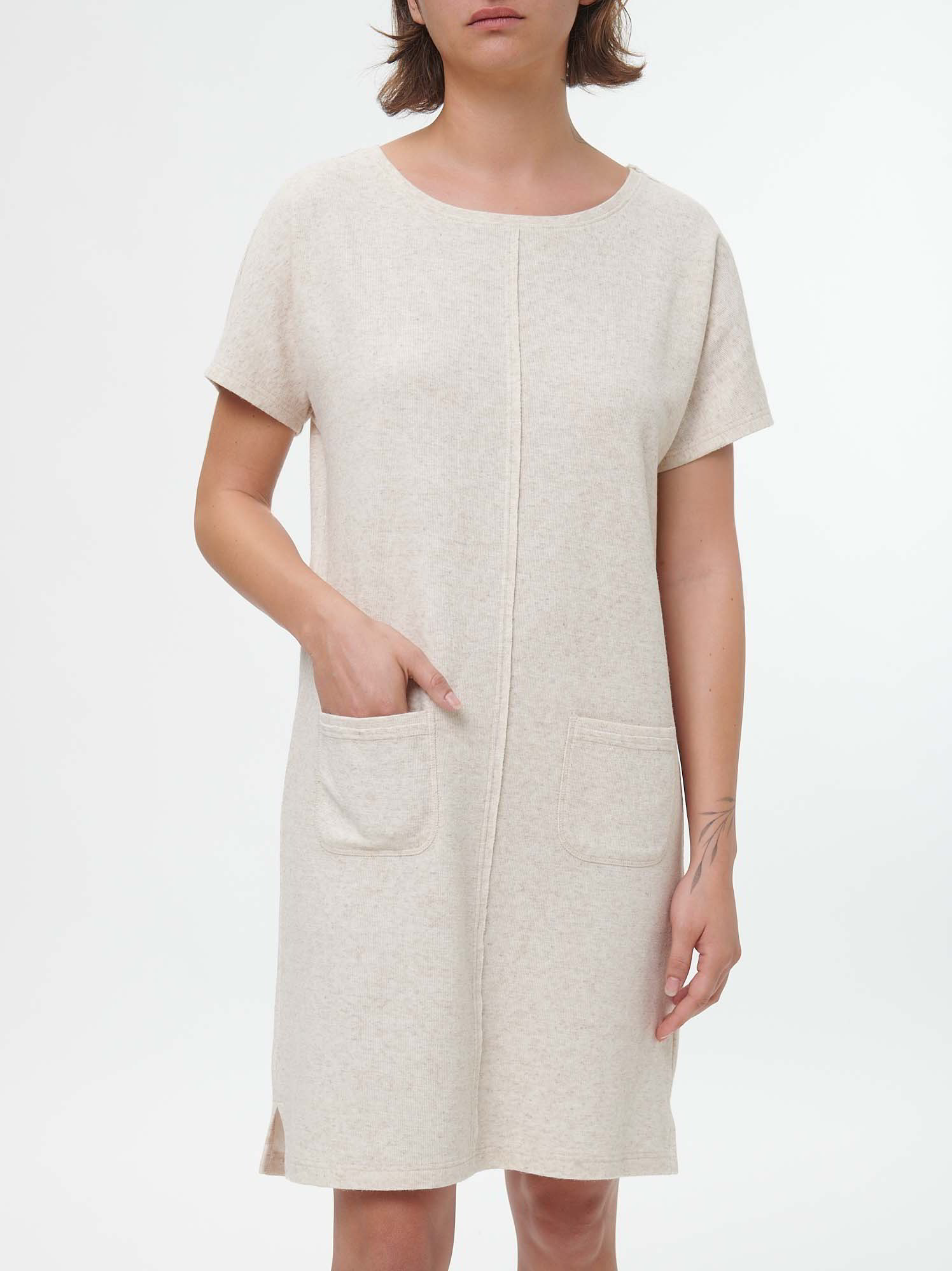 Einladend weich und sanft zur HautKleid in weicher Sweat-Qualität: Das Modell der Double-Face-Serie entsteht aus Baumwolle kbA und Hanf kbA. Es besticht auf der Innenseite mit einer sanft aufgerauhten Baumwoll-Oberfläche und dank der Symbiose beider Naturmaterialien mit einem Melange-Effekt auf der Außenseite des Gewebes. Neben den aufgesetzten Taschen und der Rundhalsleiste sorgt die offenkantige Verarbeitung der Nähte für einen modern-lässigen Look. Weitere Details: kurze Kimonoärmel und zwei Seitenschlitze am Saum.Schnitt: leger/kniefrei. In Größe 36 ca. 95 cm lang. Unsere Models sind zwischen 175 cm und 177 cm groß und tragen Kleidergröße 36.Ökologisch & fair produziertEin schönes Stück Natur, welches wir nur zu gern tragen. Dieses Kleidungsstück entsteht aus Baumwolle kbA in Kombination mit Hanf und wird nach strengen Richtlinien – wie dem Global Organic Textile Standard – bei unserem Partnerbetrieb gefertigt.Material: 89 % Leinen, 11 % Hanf.Materialherkunft: Baumwolle kbA aus Indien, Kenia und der Türkei. Hanf aus Litauen. Gewirkt in Litauen. Gefertigt in Litauen nach dem strengen GOTS. -