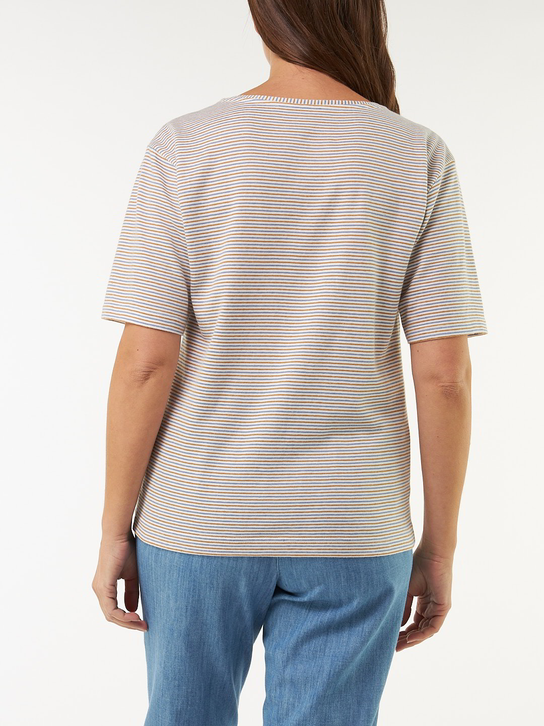 Kurzarmshirt aus Bio Leinen/Baumwolle, 61 blau/curry ringel, 40, GOTS
