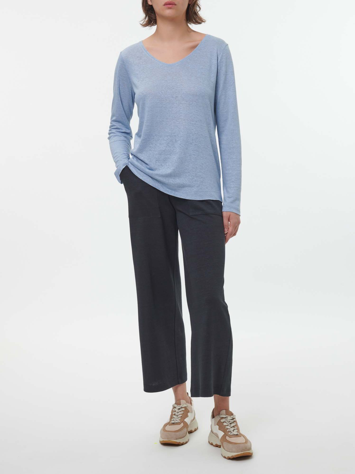 • Langarmshirt aus Bio-Leinen, 28 kornblume