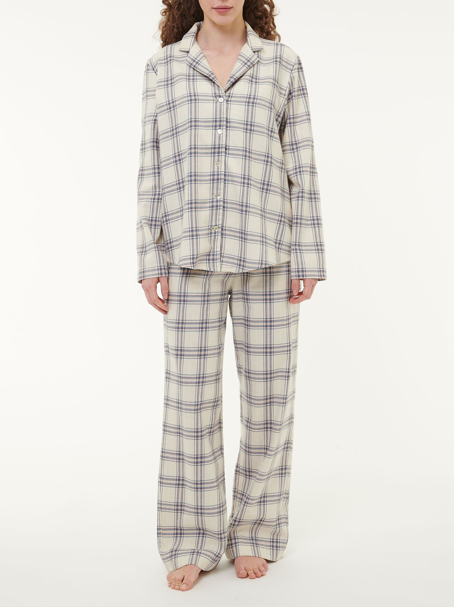 Unser leger geschnittenes Pyjama-Hemd aus reiner Baumwolle kbA überzeugt mit weicher Flanell-Qualität und einer klassischen Karo-Dessinierung. Die angeraute Oberfläche sorgt für ein besonders angenehmes Hautgefühl – ideal für entspannte Nächte und ruhige Morgenstunden. Mit Reverskragen und durchgehender Knopfleiste.