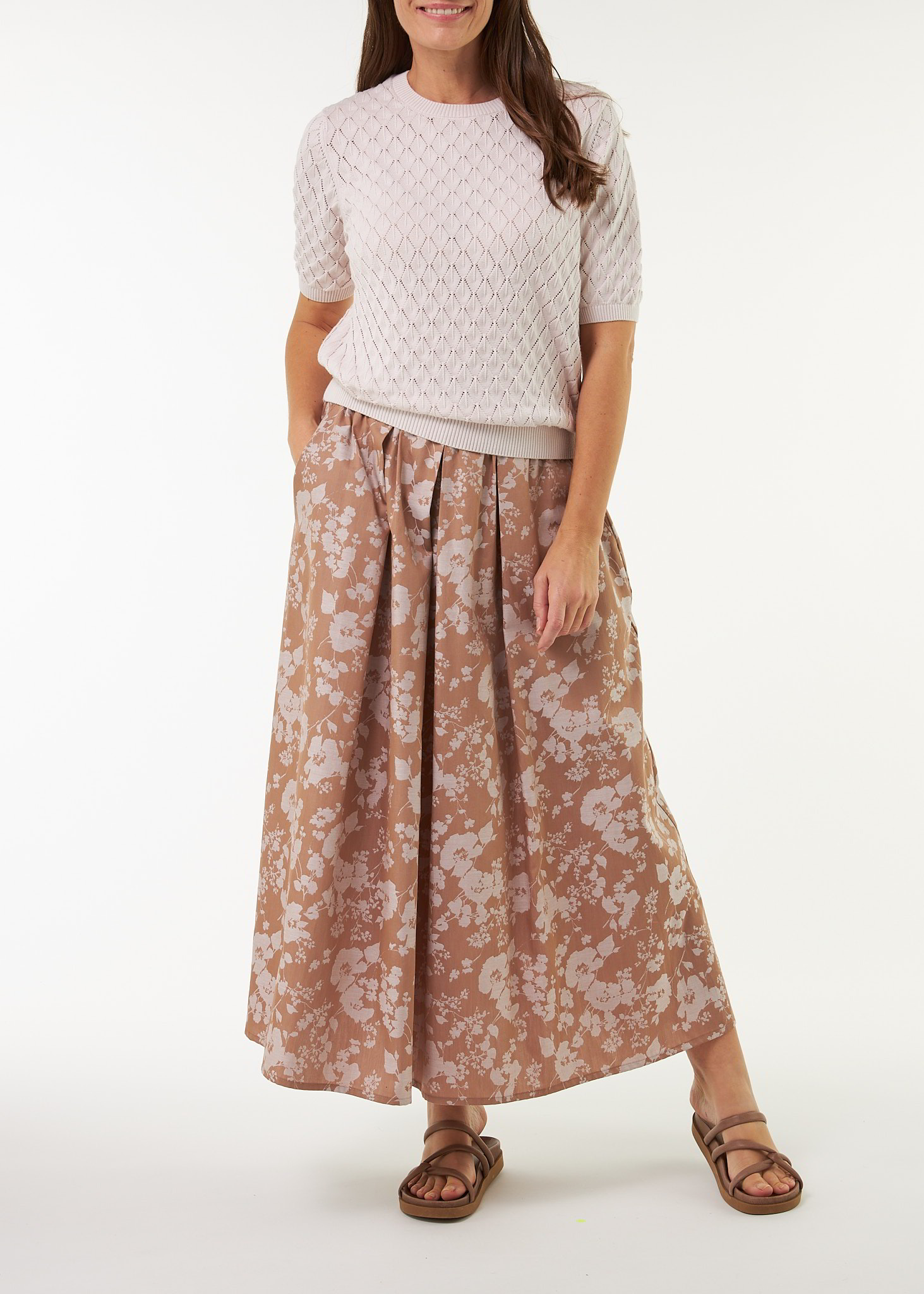 Schnitt: weit/midi. Innenbeinlänge in Größe 36 ca. 90 cm. Unsere Models sind zwischen 175 cm und 177 cm groß und tragen Kleidergröße S.